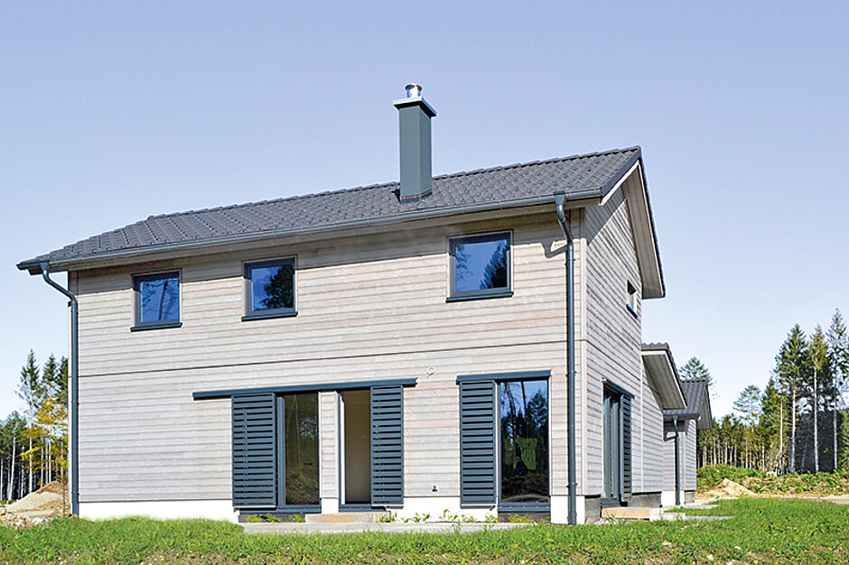 Darüber hinaus wurden zur Erhöhung der Farbstabilität und Langlebigkeit verschiedene Materialsysteme zur Oberflächenveredelung sowohl vom Hersteller selbst als auch anderen Anbietern getestet. Die Fachberater empfehlen für die strukturierten Nut- und Federprofile eine Applikation mit der silikatischen Vergrauungslasur »Lignosil®-Verano« von Keimfarben.