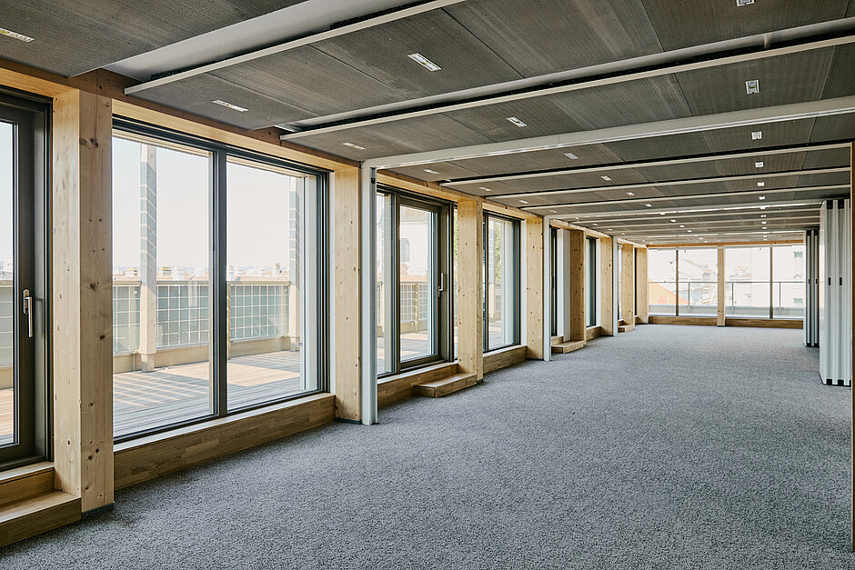 Das System kommt bereits in unterschiedlichsten Projekten zum Einsatz – von neuen Holz-Hybrid-Gebäuden über Dachgeschossausbauten bis hin zu Sanierungen. Meist in Bürogebäuden, aber auch im Wohnbereich.