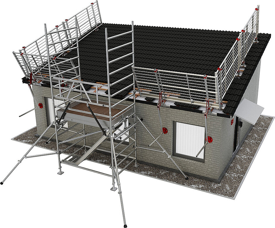 Das neue Dachzugangsset wurde speziell für den professionellen Einsatz entwickelt und ermöglicht Monteuren, Dachdeckern und Servicetechnikern einen einfachen und normkonformen Zugang zum Dach – direkt von der fahrbaren Arbeitsbühne mit Treppengang aus. Das Set kombiniert geprüfte Verbindungselemente und durchdachte Sicherheitskomponenten, die ein Höchstmaß an Schutz und Bedienkomfort bieten.