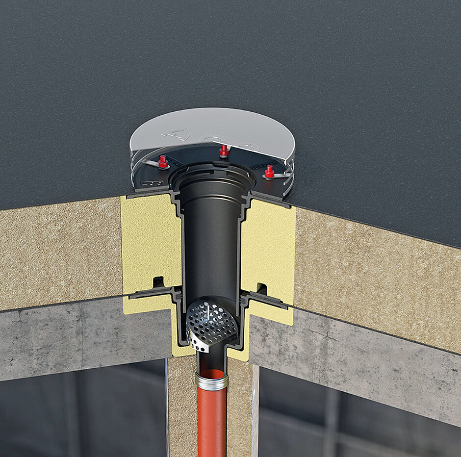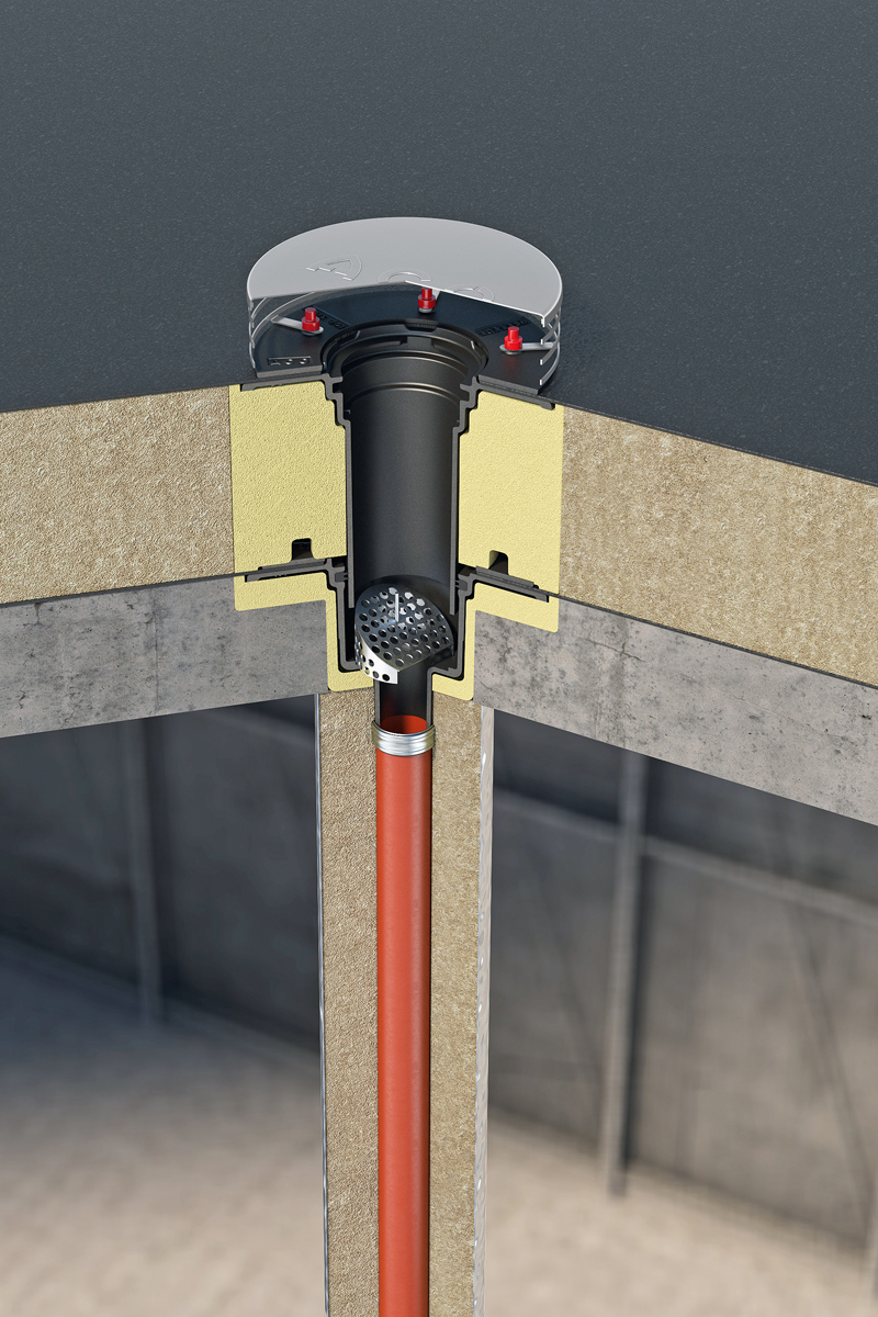 Der neue Ablauf »Passavant Jet« ist laut ACO Teil eines Baukastensystems, das unterschiedliche Varianten – in diesem Fall: DN 50 und DN 80 – sowie kombinier- und ergänzbare Elemente umfasst: neben dem eigentlichen Ablaufkörper auch Isolierkörper, Flachdachheizung, Höhenverstellringe sowie Roste und Kiesfänge. Zu den Material-Vorteilen von Gusseisen zählt neben der Nicht-Brennbarkeit (Baustoffklasse A1nach DIN 4102) vor allem Langlebigkeit, die aus den Faktoren Temperaturausdehnungskoeffizient, UV-Beständigkeit und Widerstandsfähigkeit gegen große Hitze und Kälte resultiert. Unterschiedliche Temperaturausdehnungskoeffizienten bergen die Gefahr von Spannungsrissen an Bauteilen. Da Gusseisen und Beton annähernd gleiche Koeffizienten aufweisen, sei diese Gefahr mit dem ACO-Flachdachablauf »Passavant Jet« von vornherein gebannt. Gleiches gilt für die UV-Beständigkeit, die bei Gusseisen keine separate Beschichtung erfordert. Die Materialeigenschaften von Gusseisen bleiben nach Angaben von ACO Haustechnik über Jahrzehnte konstant.