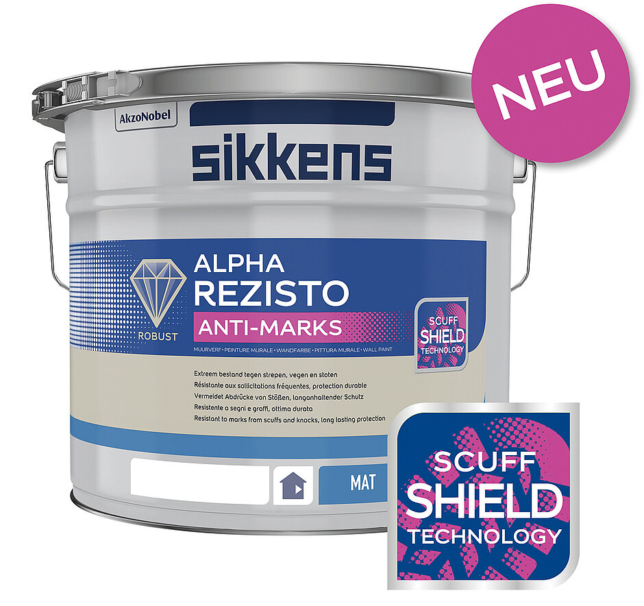 Koffer, die an der Wand entlangschrammen, Fahrräder und Kinderwagen, die durchs Treppenhaus getragen werden, Stühle, die gegen die Wand gerückt werden: Für diese Fälle ist »Alpha Rezisto Anti-Marks« entwickelt worden. Die widerstandsfähige Innenwandfarbe von Sikkens liefert dem Maler die geeignete Problemlösung für Wände, die starken mechanischen Belastungen ausgesetzt sind. Dank der »Scuff Shield Technology« ist die Oberfläche der Farbe auf mikroskopischer Ebene viel glatter. Das reduziert die Aufprallenergie von z. B. Koffern, Taschen, Schuhsohlen, Reifen oder Stuhllehnen deutlich. Die Materialien gleiten von der Oberfläche ab, die Gefahr von Kratzspuren und der berüchtigte Schreibeffekt bei dunklen Farben werden deutlich minimiert. Die Schutzwirkung ist vom Prüfinstitut iLF Magdeburg bestätigt, so der Hersteller. Dank der stoßunempfindlichen Oberfläche wirken selbst stark frequentierte Räume länger gepflegt und ansprechend.