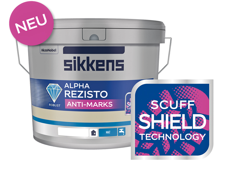 Die neue, widerstandsfähige Innenwandfarbe »Alpha Rezisto Anti-Marks« ist dafür konzipiert, Flächen überall da zu schützen, wo besondere mechanische Belastungen an der Tagesordnung sind: Eingangsbereiche, Flure, Treppenhäuser, Hotelzimmer, Klassenzimmer, Büros und Wartebereiche. Die neuartige »Scuff Shield Technology« reduziert laut Hersteller sichtbar Spuren von Schrammen und Abrieb. Denn die Oberfläche von» Alpha Rezisto Anti-Marks« sei aufgrund dieser Technologie auf mikroskopischer Ebene viel glatter. Das reduziere die Aufprallenergie von Kunststoff- und Gummimaterialien. Die Materialien würden von der Oberfläche abgleiten und die Gefahr von Kratzspuren werde reduziert.