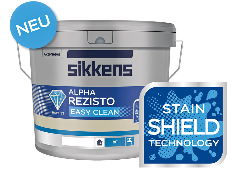 Die Innenwandfarbe »Alpha Rezisto Easy Clean« ist für Bereiche entwickelt, in denen schmutzabweisende und hochwertige Beschichtungen gewünscht sind. Im Vergleich zum Vorgänger »Alpha Rezisto Mat« ist die Oberfläche matter – ein Look, der den aktuellen Trend aufgreift. Die »Stain Shield Technology« von »Alpha Rezisto Easy Clean« wirkt wie ein Schutzschild. Die Bindemittel-Technologie schützt Oberflächen wie ein unsichtbarer Film. Flüssigkeiten und Verschmutzungen dringen laut Hersteller nicht ein, sondern verbleiben auf der Oberfläche. Frische Verunreinigungen ließen sich somit mit Wasser und einem weichen Schwamm oder einem Tuch entfernen, die Oberfläche regeneriere sich danach von selbst. Das Produkt sei zudem hoch wirtschaftlich mit einem Verbrauch von 12,5 Litern für 115 m2 und lasse sich einfach verarbeiten.