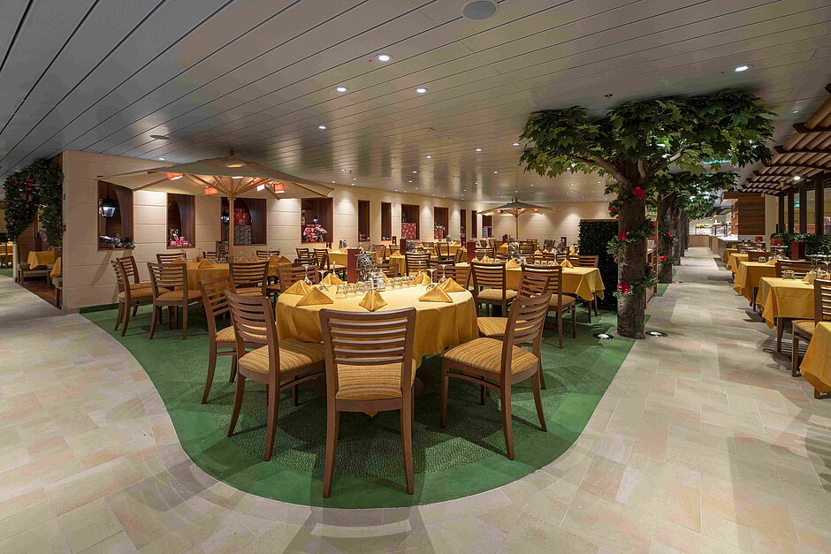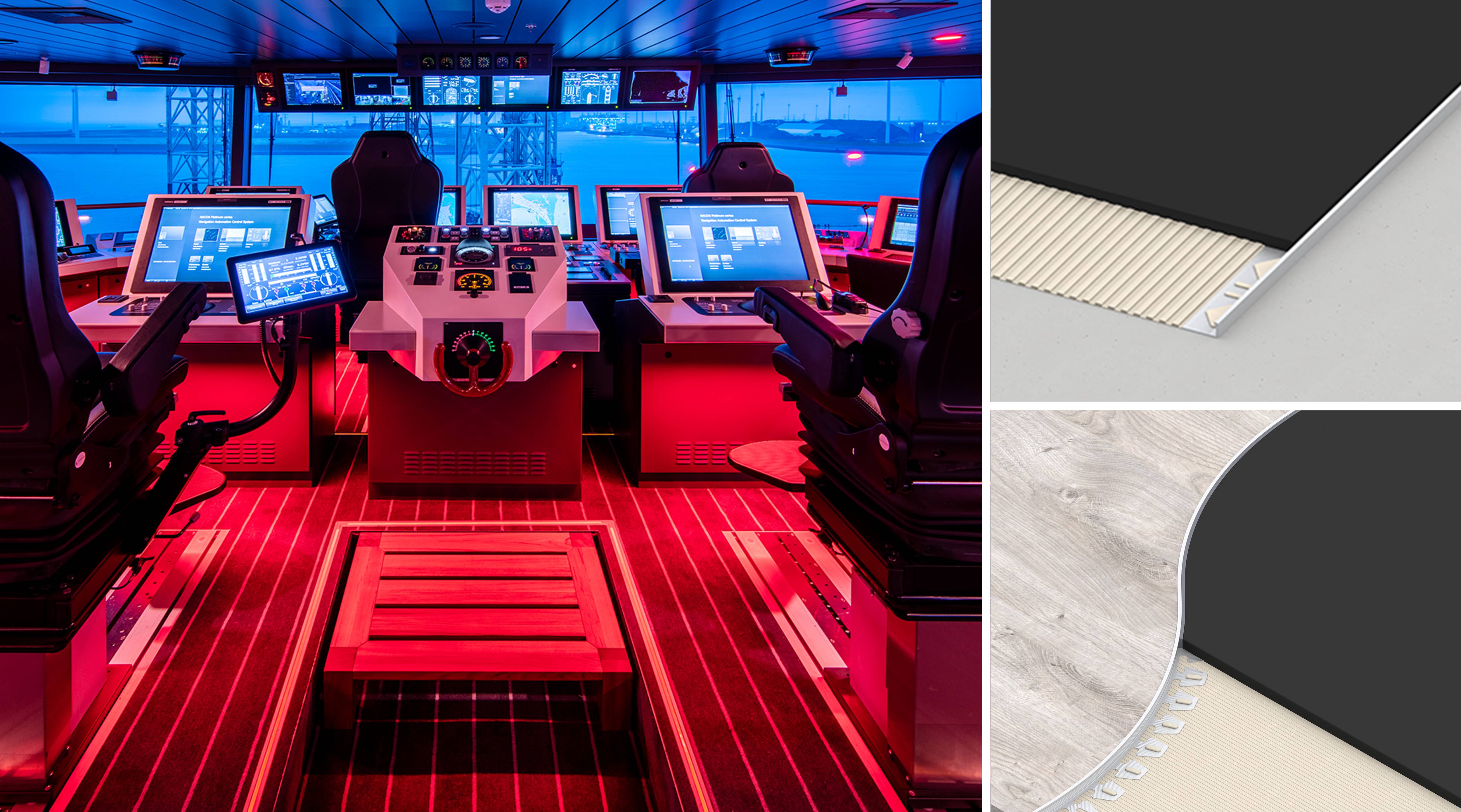 4.075 m radiale Trennungen aus glänzendem Edelstahl in den Höhen 10 mm und 12,5 mm finden sich in unterschiedlichen Bereichen des Luxusliners AIDAnova, dem weltweit ersten Kreuzfahrtschiff, das vollständig mit Flüssiggas betrieben wird und das seit 2018 durch die Weltmeere kreuzt. Alle Winkel-Profile sind optimal für eine mittlere bis hohe Beanspruchung im Innen- und Außenbereich ausgelegt. Neben der Brücke sind die alfercurve-Profile auch in mehreren der 17 Restaurants, 23 Bars, Lounges und Cafés sowie auf dem Staplergang des Schiffes zu finden.