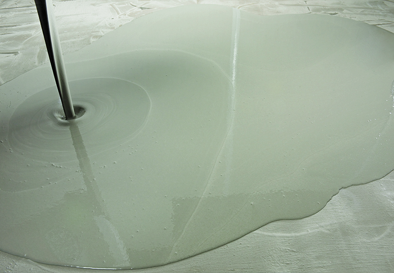 Aufgrund der guten Verlaufs- und Selbstglättungseigenschaften ist in der Regel ein Nachspachteln oder Schleifen überflüssig. Bereits nach sechs Stunden ist die Fläche belegereif. J