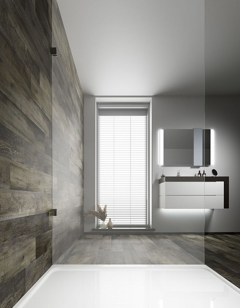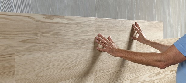 Den Trend zu Designbelägen für Böden gibt es schon länger. Inzwischen werden diese aber auch immer öfter an Wandflächen ausgeführt. „Das liegt vor allem daran, dass PVC und Co. häufiger in Bädern eingesetzt werden als noch vor fünf bis zehn Jahren. Und hier wünschen sich die Bauherren dann alles aus einem Guss und nicht zwei unterschiedliche Materialien auf dem Boden und an der Wand“, so Martin Kupka, stellvertretender Leiter Anwendungstechnik.