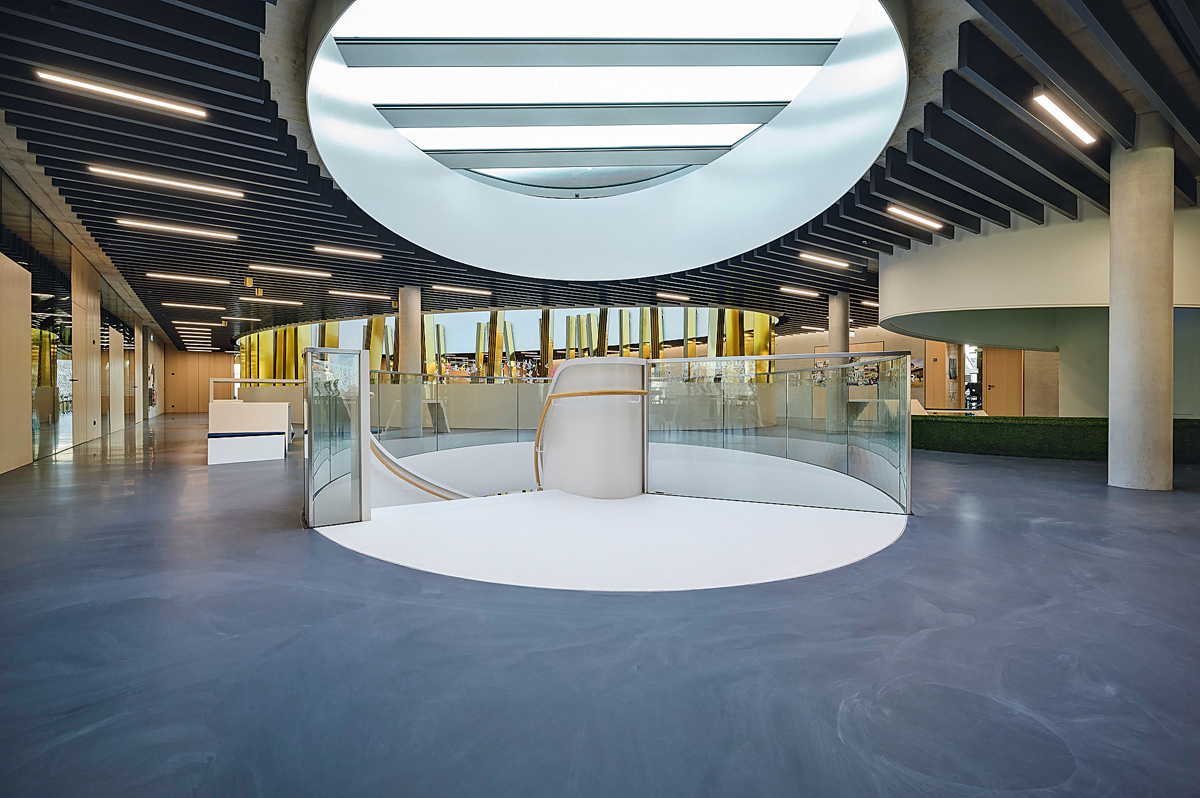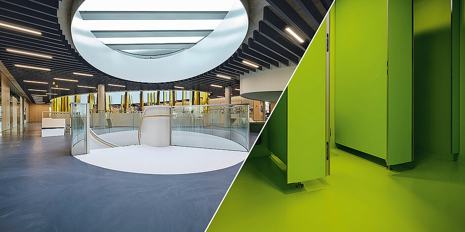 Durch die gewählten Farben wird dem Schulgebäude eine moderne, stilvolle Atmosphäre verliehen. Arturo gibt an, dass seine Böden hochwertig, langlebig und gemäß AgBB emissionsarm sind, was zum gesunden Raumklima beiträgt. Darüber hinaus wurde die hier eingesetzte Arturo »PU2030« Verlaufbeschichtung mit dem Cradle-to-Cradle-Zertifikat Silver für eine konsequente Kreislaufwirtschaft ausgezeichnet.