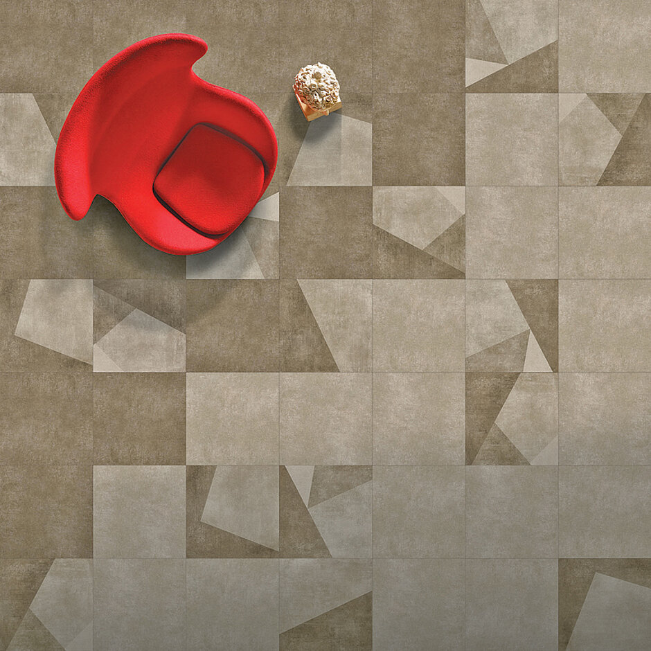 Designer und Architekten können aus vier Farbgruppen wählen. Sie sind aufeinander abgestimmt und erinnern an die unterschiedlichen Farbnuancen von Tonerde und Stein.Die Gruppen bestehen jeweils aus vier auffälligen »Tilt« Grafikfliesen, die mit zwei Farben der zurückhaltenden »All-over Tone«-Fliesen kombiniert werden können. Da alle Farbtöne miteinander harmonieren, lassen sich auch Fliesen unterschiedlicher Farbgruppen zu neuen Gestaltungsformen zusammenzufügen. Es entstehen in jedem Fall zufällige, faszinierende und kreative Motive. Die robuste Kollektion, sei es als Multilayer- (60,5 cm x 61,5 cm) oder Dryback-Fliese (60,96 cm x 60,96 cm), eignet sich besonders für den Einsatz in hochfrequentierten Bereichen im Objekt; für die Gastronomie, für Ladengeschäfte, in Büros, aber auch in Schulen und Verwaltungsgebäuden. Die Kollektion ist in zwei Varianten erhältlich: zur schwimmenden Verlegung mit einem starren Kern und dem neuen »Droplock 400« Verlegesystem. J