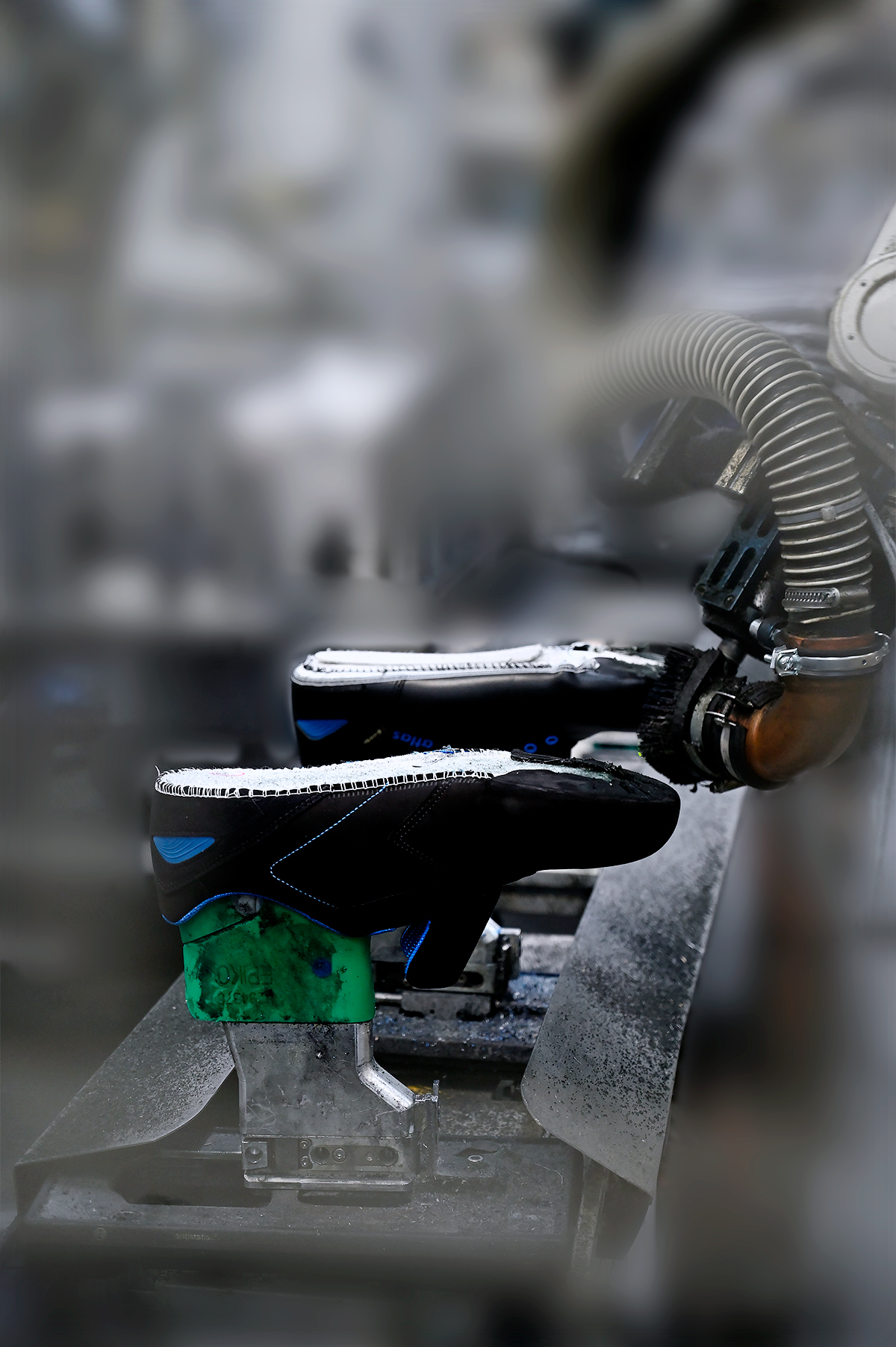 Seit 2006 produziert Atlas die Lederoberteile seiner Sicherheitsschuhe in einem eigenen Betrieb im Süden Brasiliens. »Das sehe ich wirklich als besonderen Meilenstein in unserer Unternehmensgeschichte an«, sagte Hendrik Schabsky im Gespräch mit der Redaktion. »Die Schäfte für unsere Sicherheitsschuhe werden dort komplett selbst gefertigt. So können wir nicht nur eine hohe Qualität sicherstellen, sondern auch unsere Lieferketten genau nachvollziehen«, so Schabsky weiter. Die Schäfte werden per Container nach Dortmund verschifft, wo die Endmontage der Schuhe stattfindet. Je nach Modell wird die passende Sohle auf einem von insgesamt acht Hightech-PU-Besohlungsautomaten angespritzt. »Bei Atlas wird jedes Produkt im eigenen Haus gefertigt«, fasst es Hendrik Schabsky zusammen. »Dadurch sind wir in der Produktion natürlich sehr flexibel und können auch Auftragsspitzen abfangen. Zudem lassen sich Innovationen schnell umsetzen, testen und in unsere Produktion integrieren. Das ist für uns in jeder Hinsicht ein großes Plus.«