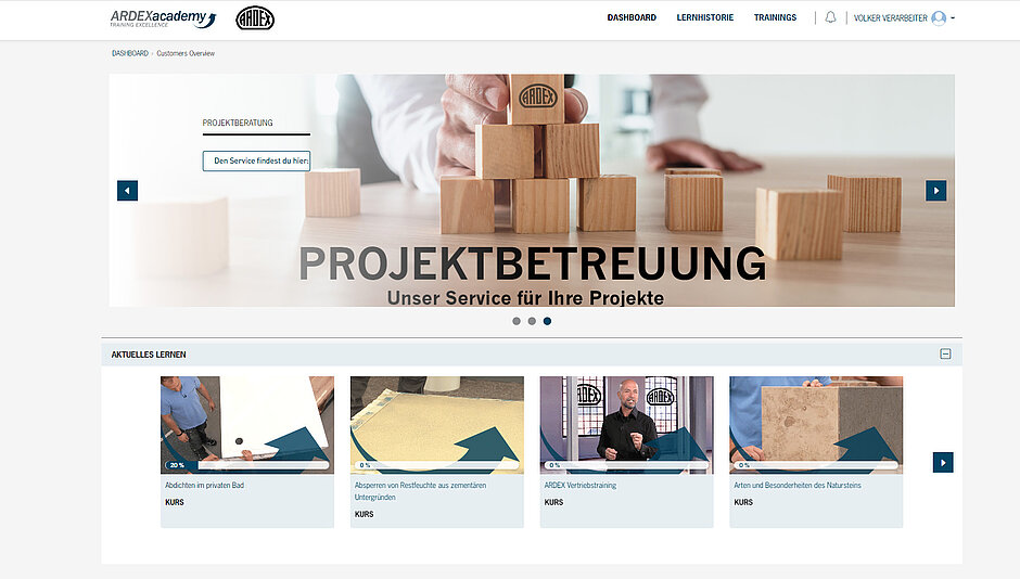 Aktuell bietet die Plattform mehr als 20 verschiedene Kurse an, mit fast 150 einzelnen Videos. Die Inhalte werden kontinuierlich aktualisiert und ergänzt. Von Anfang war es Ardex nach eigenen Angaben wichtig, die Möglichkeiten des E-Learnings zu nutzen und die Angebote konsequent interaktiv zu gestalten – also mit interaktiven Modulen wie Videos, animierten Inhalten oder auch der Möglichkeit, sich personalisierte Zertifikate herunterzuladen. „Mit dem Start der digitalen ARDEXacademy in der Coronazeit haben wir vermutlich einen guten Zeitpunkt erwischt. Nach zwei Jahren haben wir viele Erfahrungen gesammelt und bringen jetzt die verbesserte Version an den Start“, so Stolper weiter.