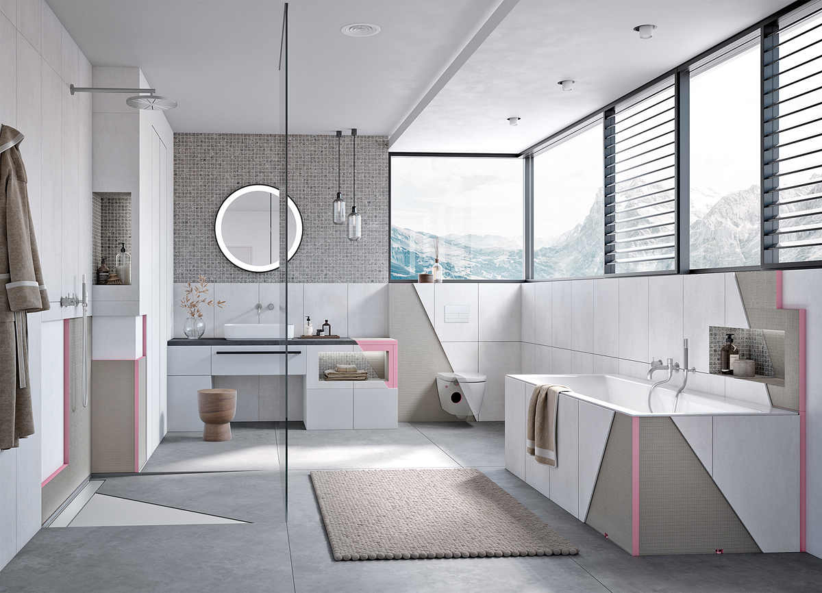 Die »Austrotherm Uniplatte« überzeugt durch ihre wasserfeste, druckstabile und zugleich leichtgewichtige Konstruktion. Durch das allgemeine bauaufsichtliche Prüfzeugnis ist sie als wasserdicht im System klassifiziert und erfüllt die Anforderungen der Beanspruchungsklasse A (Wassereinwirkungsklassen W0-I bis W2-I). Geprüft wurde das System in Kombination mit Produkten des Bauchemiespezialisten Murexin sowie Fliesenklebern verschiedener Hersteller. Bei der Verwendung der aus wasserfestem XPS gefertigten »Austrotherm Uniplatte« im System müssen lediglich die Stoßfugen abgedichtet werden.