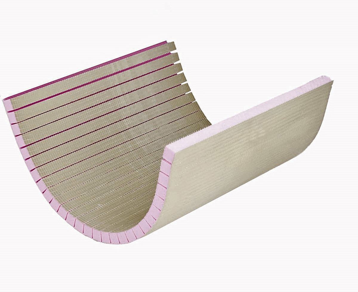 Die flexible Uniplatte (1300 x 600 x 30 mm) ermöglicht die Umsetzung runder Formen, wie sie häufig bei Säulen oder Wellnessbänken benötigt werden. Werkseitige Quereinschnitte erlauben das einfache Formen selbst von engen Radien. Auf Wunsch ist die flexible Uniplatte auch mit Längsschnitten lieferbar.