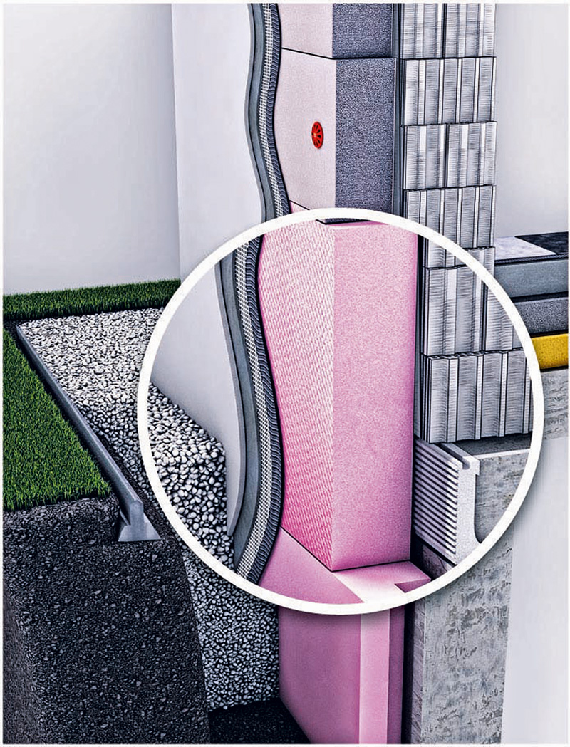 Die Dämmung des Gebäudesockels erfordert besondere Sorgfalt, denn sie soll Wärmebrücken, die über innen anschließende Kellerdecken entstehen können, verhindern und so den U-Wert über die gesamte Fassade hinweg gleich niedrig halten. Darüber hinaus ist die Sockeldämmung besonderen mechanischen Beanspruchungen ausgesetzt.