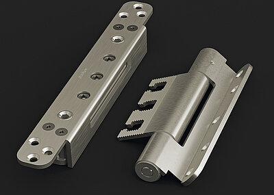 Das »Pivota DXS 300 Steel« gilt mit seiner Tragfähigkeit von bis zu 350 kg pro Paar laut Hersteller als Schwerlastträger innerhalb der Produktfamilie der verdeckt liegenden Bänder. Mit einer externen Bandseitensicherung lassen sich aber auch Eingangstüren mit niedrigerem Gewicht und unabhängig von der Art des Bandes für die Widerstandsklasse RC3 sichern. Die Lösung von Basys wird flügelseitig mit einem entsprechenden Gegenstück in der Zarge montiert und bleibt für die sichere Verbindung justierbar.