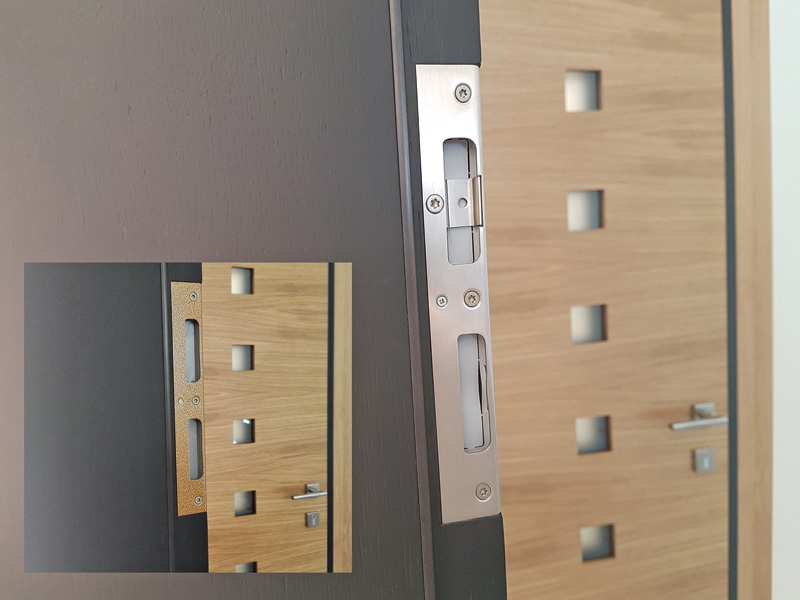 Das Prinzip funktioniert sowohl bei den leichten, aus 1,5 mm starkem Werkstoff gefertigten, als auch bei den massiven Schließblechen aus 8 mm starkem Stahl respektive Edelstahl: Die Materialstärke rüstet das Schließblech für seinen Einsatz bei hohen Türgewichten und hohen Öffnungs-/Schließfrequenzen aus und eignet sich darüber hinaus als Basiskomponente beim Einbruch- und Brandschutz.