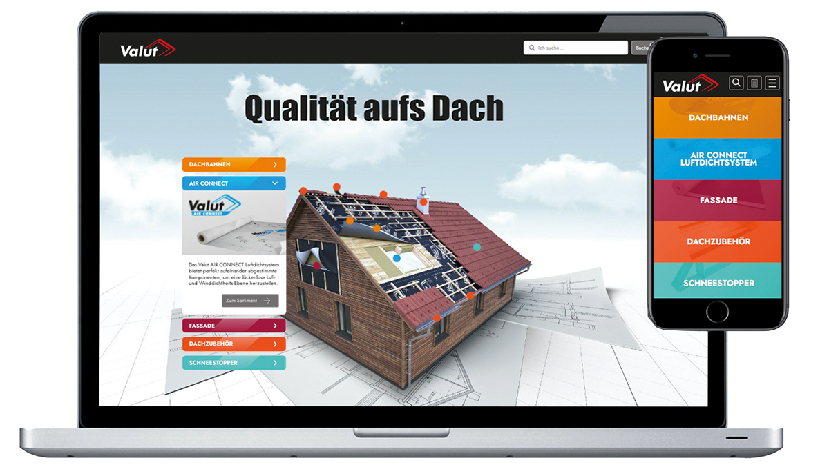 Qualität aufs Dach zu bringen ist oberster Grundsatz von Valut. Die Marke von BayWa Baustoffe will Dachprofis spürbare Mehrwerte bieten. Was für die Produkte gilt, gilt auch für die Website von Valut. Nach einem umfassenden Relaunch sollen Nutzer von innovativen Tools und interaktiven Features profitieren.