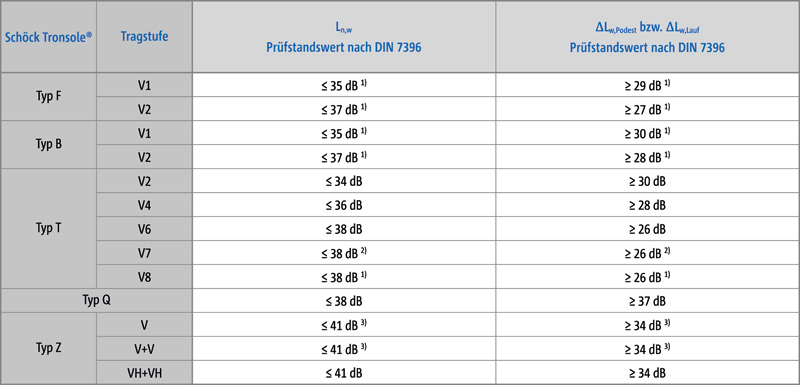 Mithilfe der Schöck Tronsole lassen sich in typischen Mehrfamilienhäusern Trittschalldämmwerte zwischen L‘n,w 35 dB (DEGA-Klasse A und Schallschutzstufe III der VDI 4100) und 42 dB (DEGA-Klasse B) erreichen. Die Anforderungen an den erhöhten Schallschutz nach DIN 4109-5 und die Schallschutzstufe II nach VDI 4100 werden durch den Einbau mit einem deutlichen Abstand erfüllt – ein Sicherheitsplus bei der Planung und Ausführung auf der Baustelle.