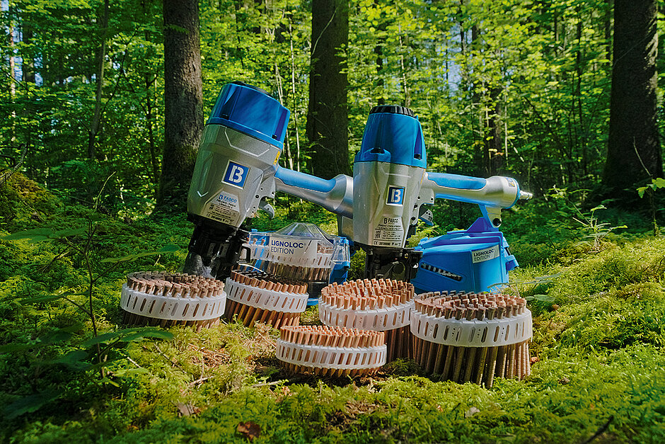 »Lignoloc« ist nach Unternehmensangaben nicht nur der weltweit erste schießbare Holznagel – und damit geeignet für die industrielle Fertigung und ökologische Holzbearbeitung – sondern auch ein Vorreiter in Sachen Nachhaltigkeit mit einem um 66 Prozent reduzierten CO2-Ausstoß im Vergleich zu herkömmlichen Systemen, wie Beck mitteilt. Mit dem eigens entwickelten »Fasco«-Druckluftnagler der »Lignoloc«-Edition, lassen sich die Holznägel problemlos in Holz und Holzwerkstoffe einschießen und garantieren laut Hersteller dabei eine feste, unlösbare und stoffreine Verbindung.