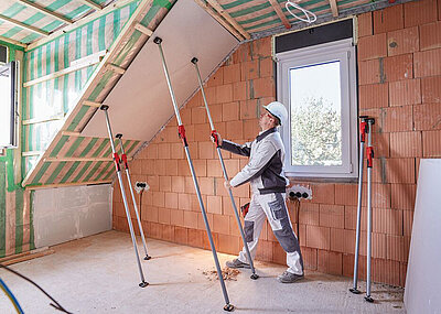 Die Türfutterstrebe »TU« fixiert schonend und exakt das Türfutter beim Ausschäumen der Mauerfuge. Sie ist laut Hersteller ideal für millimetergenaue Türbreiten-Vermaßung von 56,5 bis 101 cm. Komfortables Arbeiten ermöglichen ihre Spannbügel mit großer Spannfläche und abnehmbarem Ausleger. Durch einfaches Umstecken der Spannbügel sind Futtertiefen von 6 bis 13 cm sowie von 13 bis 30 cm einstellbar.