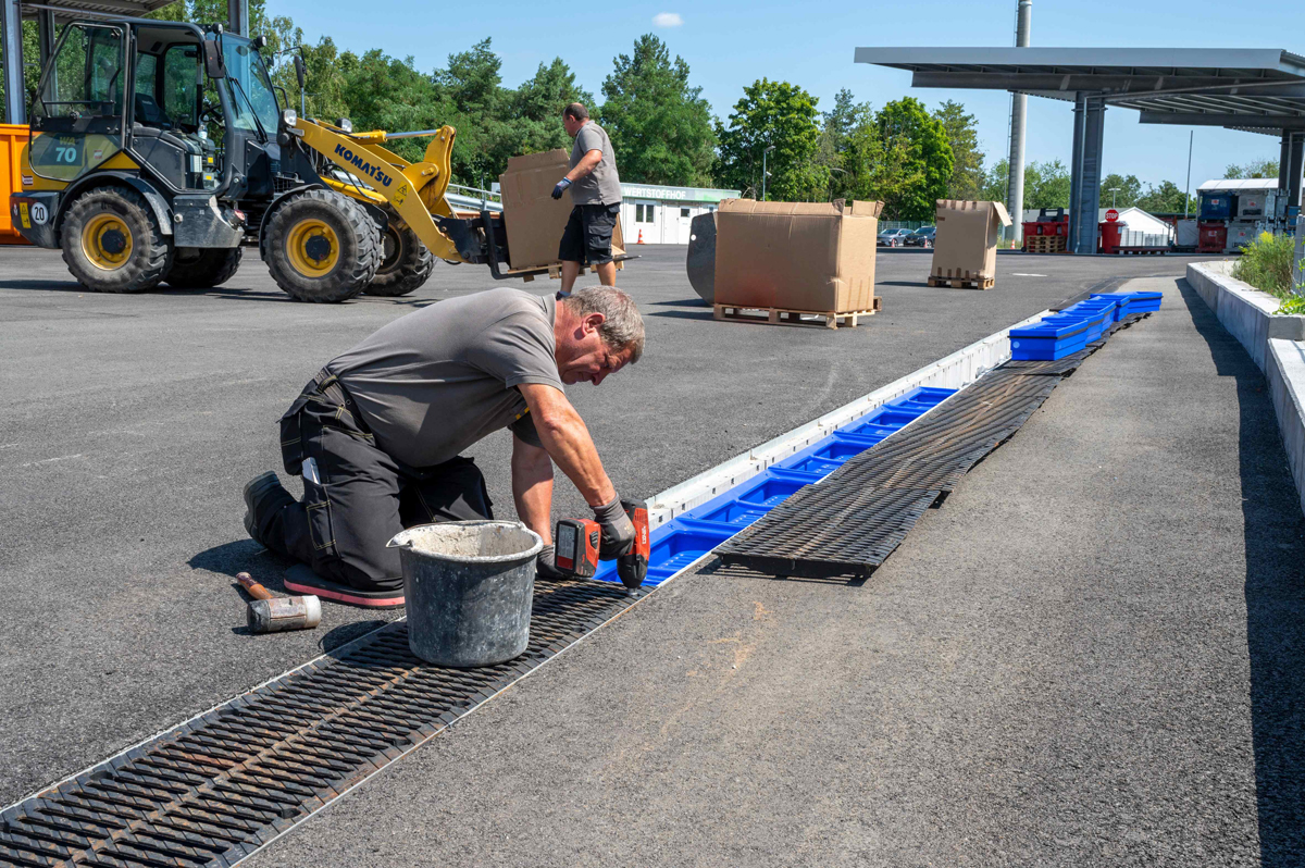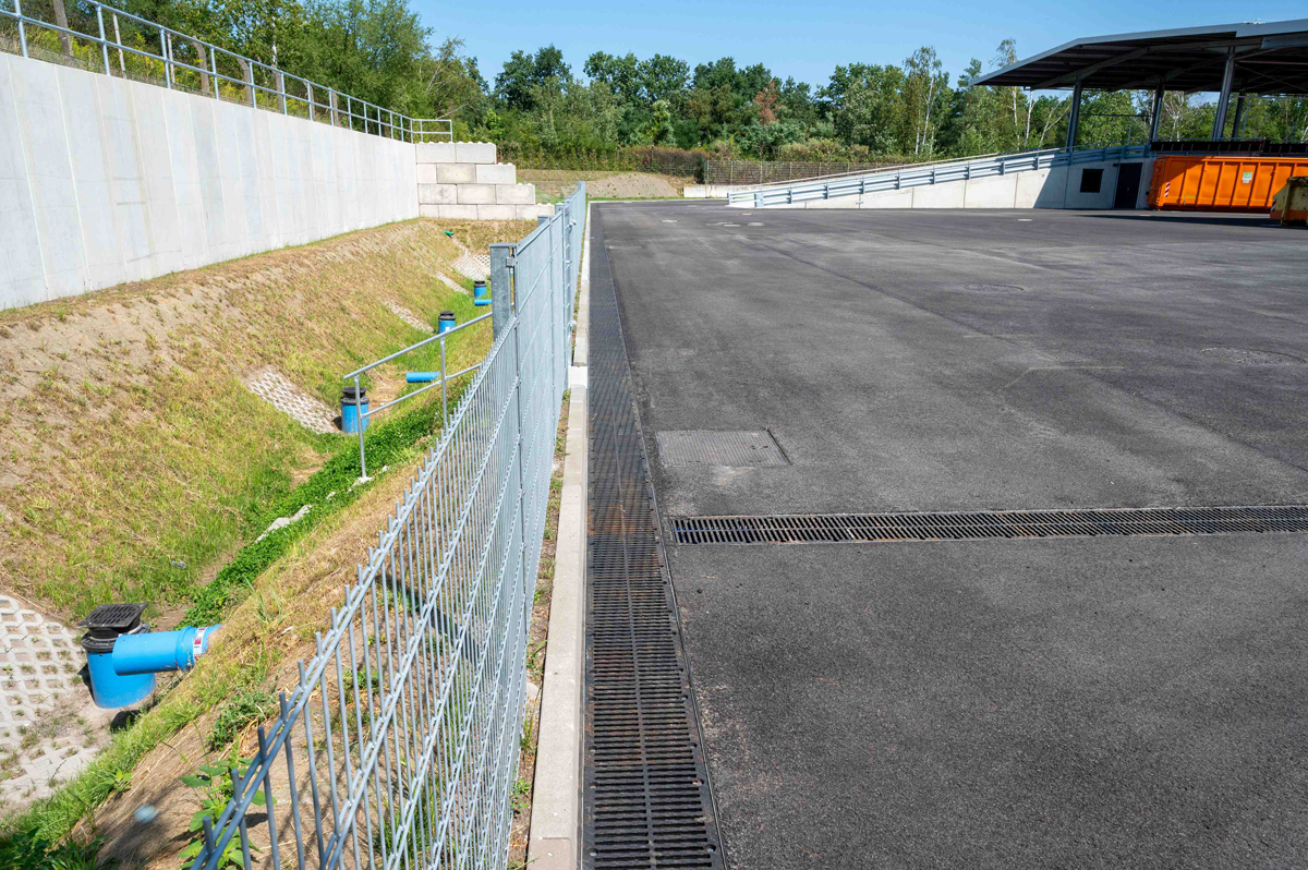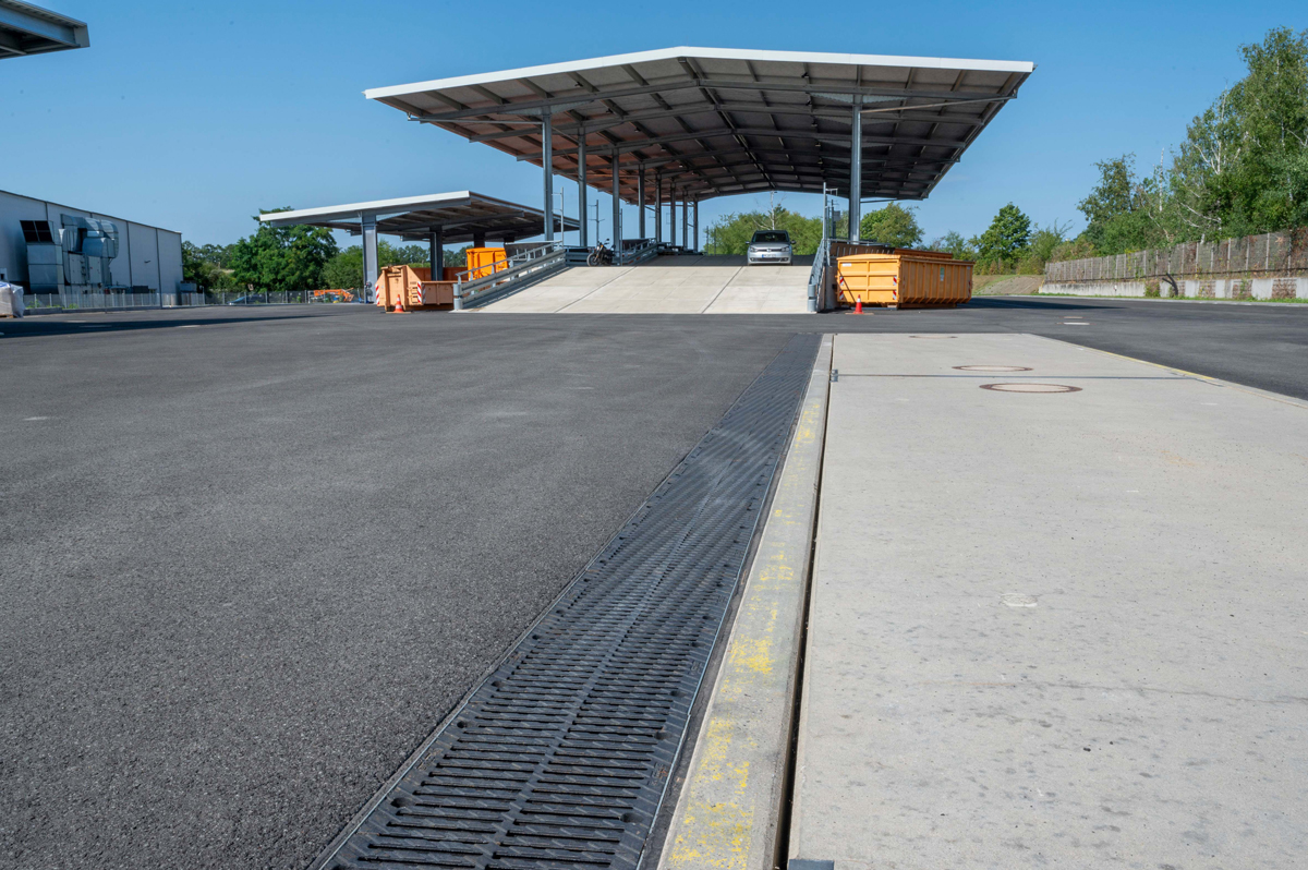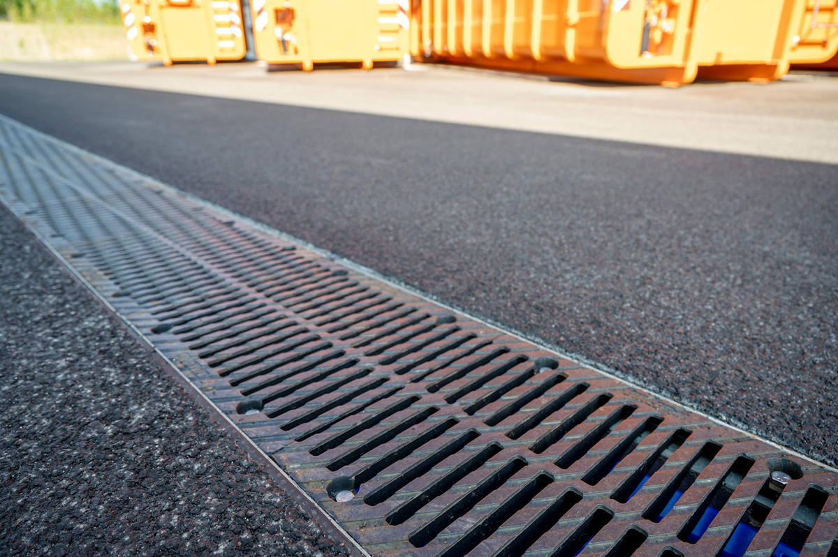 Mit einer Belastbarkeit der Rinnenkörper bis Klasse F 900 (bei entsprechendem Einbau), 4 mm Massivstahlzargen und der Doppelsteg-Gussabdeckung Klasse D 400 ist das flexible System eine stabile und langlebige Lösung. Dies ist speziell bei den Anforderungen eines Wertstoffhofs mit rangierenden Fahrzeugen, Lkw- und Schwerlastverkehr von entscheidender Bedeutung.