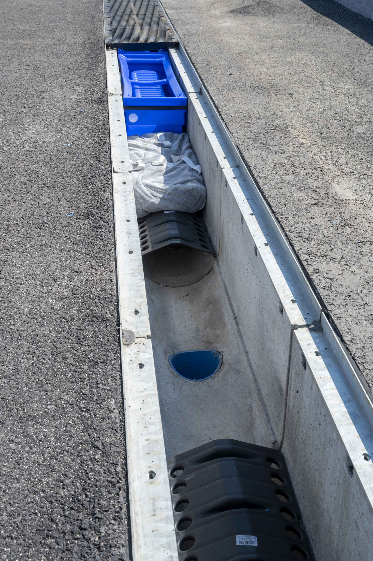 Basis der Sedimentations- und Filtrationslösung ist die Schwerlastrinne »Bircosir« in der Nennweite 300 AS aus hochwertigem und belastungsresistentem »C 35/40«-Beton. Durch ihre modulare Bauweise können die Rinnenelemente inklusive Abdeckungen im 90°- Winkel oder individuell auf Gehrung zugeschnitten werden, was eine flexible und einfache Installation auf dem Wertstoffhof ermöglichte. »Auf dem Gelände mit einem sehr lehmigen und sandigen Boden mussten insgesamt 400 m ›Bircopur‹ verlegt werden, um das behandelte Wasser zu den jeweiligen Versickerungsrigolen zu leiten. Bei dem erstellten Geländeplan und dem anspruchsvollen Gefällewechsel war ein flexibles und einfach handhabbares System entscheidend für eine effektive Installation«, erläutert Matthias Hoffmann, zuständiger Bauleiter von der GP Papenburg Hochbau GmbH NL Rohbau. »Es war zwar unsere ›Bircopur‹-Premiere, aber als langjährig zertifizierter Fachbetrieb nach Wasserhaushaltsgesetz ist unseren Facharbeitern das bewährte Rinnensystem von Birco aus verschiedenen Projekten bereits vertraut. Der bekannte Grundkörper, dessen Lage auf der Tragschicht einfach durch seitliches Betonieren gesichert werden konnte, sowie das passgenaue Zuschneiden der Rinnenelemente und Abdeckungen hat uns einen zügigen Einbau ermöglicht.«