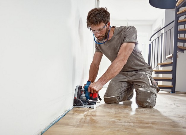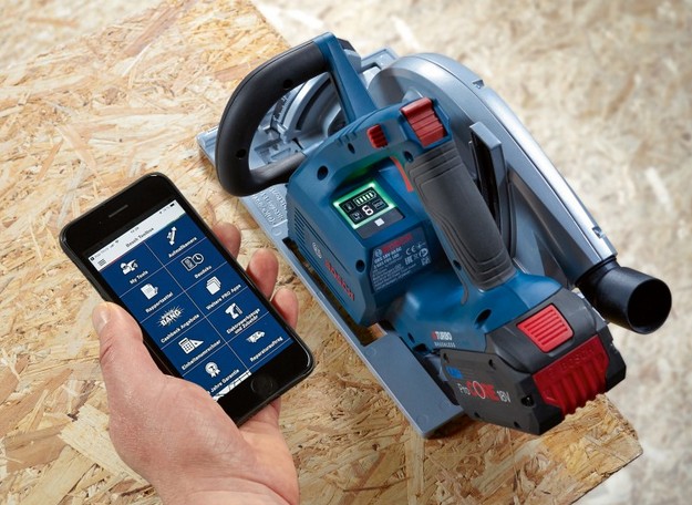 Die Akku-Handkreissäge GKS 18V-68 GC Professional ist gut 15 Prozent schneller und mit 8,0 Ah-Akku sogar 225 Gramm leichter als das vergleichbare Kabelgerät mit 1 800 Watt. Ihr vorderer Griff ist nicht als Knauf, sondern als Bügel konzipiert, um sie einfach und sicher zu führen ‒ selbst in geneigter Einstellung. Ihre Schnitttiefe wurde auf 68 Millimeter erhöht und die Tiefeneinstellung ist einfacher als je zuvor: Sie erfolgt einhändig per Knopfdruck. Die Akku-Tauchsäge GKT 18V-52 GC Professional zeichnet sich neben der hohen Leistungsfähigkeit besonders durch ihre Kompaktheit aus ‒ Handhabung und Transport sind dadurch komfortabler. Profis können zudem besonders randnah arbeiten: Mit zehn Millimetern Wandabstand ist sie Klassenbeste. Auch bei staubarmem Arbeiten: Der Staubsauger-Adapter ist um 360 Grad drehbar, sodass der mitgelieferte Staubbeutel nicht im Weg ist. Beide Sägen sind für den Einsatz mit Führungsschienen geeignet und bieten durch das neue User Interface und Connectivity-Funktionen Mehrwert: Handwerker haben den Werkzeug- und Akku-Status dadurch jederzeit im Blick. Darüber hinaus können sie die Laufzeit mit dem „Eco Modus“ um bis zu 30 Prozent verlängern oder die Schnittgeschwindigkeit an die jeweilige Anwendung anpassen. Auch Pflege und Wartung sind einfacher: Einen Reparaturauftrag kann man beispielsweise bequem per App verschicken. Wer ein solides Basisgerät mit einer Schnitttiefe von 70 Millimetern bevorzugt, kann auf die Akku-Handkreissäge GKS 18V-68 C Professional zurückgreifen.