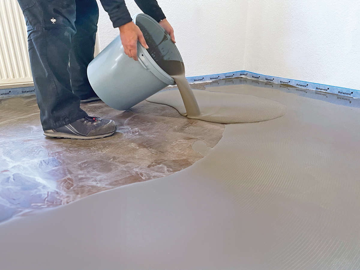 Mit »MegaFlow« bietet Botament eine staubreduzierte und emissionsarme Lösung für die Untergrundegalisierung unter Fliesen- und Natursteinbelägen, elastischen Bodenbelägen der Nutzungsklassen 23/32 oder Mehrschichtparkett, als obere Deckschicht auf begehbaren Flächen sowie als Bodenspachtel in Feuchträumen. »MegaFlow« ist zudem für beheizte Flächen sowie für die Belastung mit Stuhlrollen gemäß DIN EN 12529 geeignet.