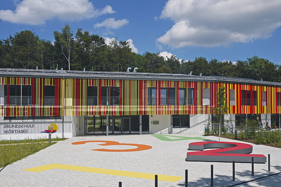 Als die Gemeinde Wörthsee 2010 den Wettbewerb für ihr neues Schulgebäude ausschrieb, nahmen vier Teams aus Architekten und Landschaftsarchitekten daran teil. Der Entwurf des Architekturbüros Sommersberger aus München und des Büros Freiraum Plan aus Gilching überzeugte letztlich die Verantwortlichen der Gemeinde Wörthsee. Die Architekten hatten eine bunte Lernlandschaft mit viel Licht und modularem Raumkonzept ohne Türen entworfen. So abwechslungsreich der Unterricht im Gebäudeinneren gestaltet werden kann, so vielfältig können auch die Freianlagen genutzt werden.