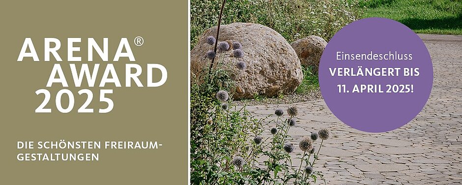 Der »Arena Award 2025« lädt Garten- und Landschaftsarchitekten, GaLaBau-Unternehmen und öffentliche Auftraggeber bereits zum sechsten Mal dazu ein, ihre spannendsten Ideen und innovativsten Umsetzungen für die Freiraumgestaltung in den Kategorien »Haus + Garten« sowie »Öffentlicher und halböffentlicher Raum« einzureichen.