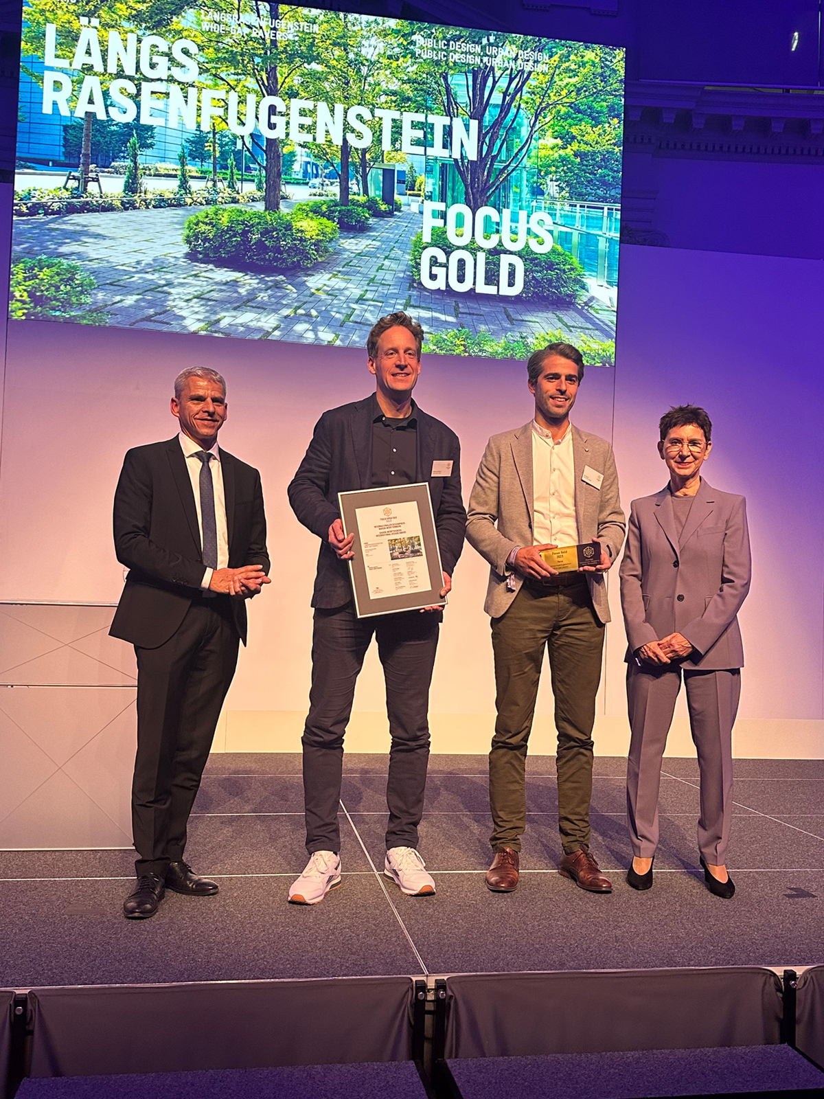 Der Längsrasenfugenstein mit »Vario«-Funktion von braun-steine wurde vom Design Center Baden-Württemberg mit dem internationalen Designpreis »Focus Open Gold« ausgezeichnet. Was die Jury laut braun-steine überzeugte: Aspekte wie Nachhaltigkeit, Funktionalität, Haltbarkeit und Ästhetik, die innovatives Design ausmachen, finden sich sowohl im Produkt als auch in seiner Anwendung.