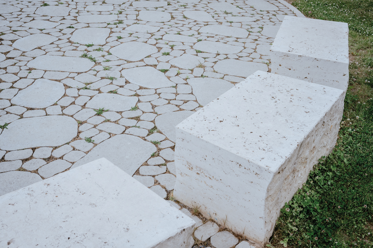 Zunächst einmal wurde die Höhensituation neu geordnet. Jetzt ist der Eingang zur Schule sowohl über eine Rampe am Rand der Fläche erreichbar als auch über eine großzügige Treppenanlage, die das Gelände terrassiert und mit Sitzmauern zum Aufenthalt einlädt. Die untere Ebene ist eine großzügige Fläche mit neuen Bäumen. Für die Belagsflächen entschieden sich Bauherr und Planerin für »Arena«-Pflaster in Naturgrau und die »Arena Bel Cante«-Pflasterplatten im gleichen Farbton. Die Pflasterplatten von Braun-Steine gibt es in verschiedenen Formaten, die in Kombination mit den Pflastersteinen lebendige Belagsbilder ergeben. Wie das richtungslose Pflaster lassen sich auch die Platten einfach und ohne zusätzliche Schnitte verlegen. »›Arena‹ war die optimale Lösung für versickerungsfähiges Pflaster, das sich sowohl gut begehen als auch mit Fahrrädern oder Rollstühlen befahren lässt«, sagt Anke Kühn. Alle bisherigen Entwässerungseinrichtungen verschwanden – Regenwasser wird jetzt durch die Fugen und in die angrenzenden Grünflächen versickert.