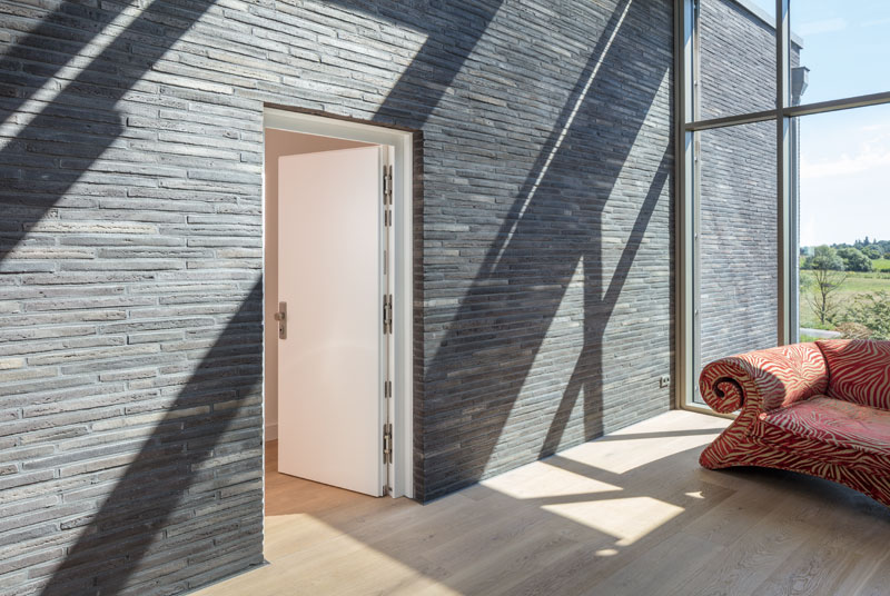 Das obere Stockwerk bietet Rückzugsorte und Privatsphäre. Hier will man ruhige Nächte, ein entspanntes Bad oder die Ruhe bei der Kleiderwahl genießen. Auch der entspannte Abend vor dem Fernseher gehört dazu und dafür braucht man keine lichtdurchfluteten Räume oder die Durchsichtigkeit von Türen mit großzügigen Glasauschnitten.