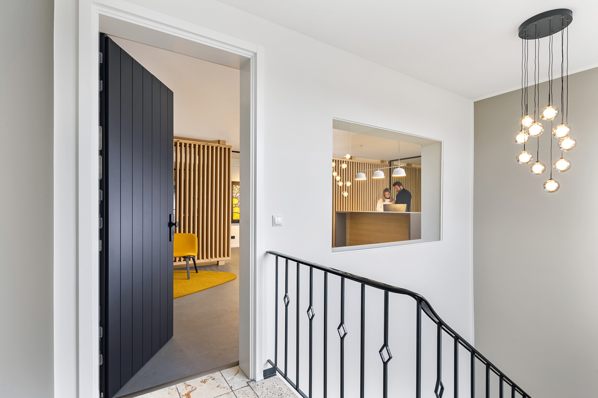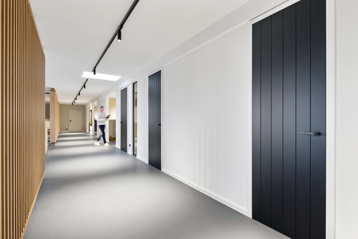 Das letzte Projekt der Freunde war deren Büro, das zu ihrer Bäckerei gehört und in einem alten Industriegebäude liegt. Mit großer Freude konnten sie kürzlich ihre neue Begeisterung für wertvolle, schöne Türen in die Realität umsetzen. Die Wahl fiel auf die edlen »Brettertüren« aus der Serie »Geoline«, in einer schwarzen, softmatten Lackierung mit weißer Zarge.