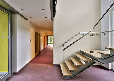 Geschäftsführer Thilo Simeoni vom RKS-Malerteam, beauftragt mit der Lösung des Problems, beriet sich mit Caparol-Fachberater Bernd Schamberger. Für ihn waren die Hanf-Absorberplatten »CapaCoustic Nature« wegen der Natürlichkeit und Nachhaltigkeit sowie ihrer individuellen und lebendig wirkenden Farbausprägung und Oberfllächenstruktur für dieses Objekt geradezu prädestiniert. Zudem seien die offenporösen Hanfplatten vor allem im unteren Wandbereich robuster und schlagfester als beispielsweise die Absorberplatten aus Melaminharzschaum.