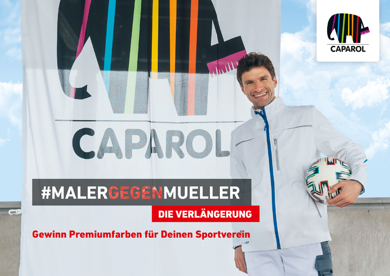 Bewerbungsschluss für die Aktion von Thomas Müller und Caparol ist der 13.05.2021. Weitere Infos und Teilnahmebedingungen unter https://maler-gegen-mueller.caparol.de/?utm_source=pr&utm_medium=print&utm_campaign=mgm-210412