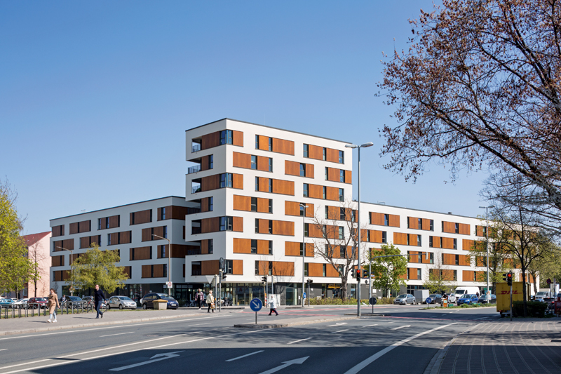 In technischer Hinsicht werden hier Fernwärme, Luft-Wasser-Wärmepumpen und Photovoltaik zu einem Energiekonzept kombiniert, das sich ebenso wirtschaftlich attraktiv wie nachhaltig präsentiert. Zu diesem zukunftsorientierten Charakter passt auch, dass die Tiefgarage für E-Mobilität ausgelegt ist und die kompletten Gebäude mit einem »Capatect« Wärmedämm-Verbundsystem verkleidet sind, das einen Teil zur Nachhaltigkeit des Ensembles beiträgt.