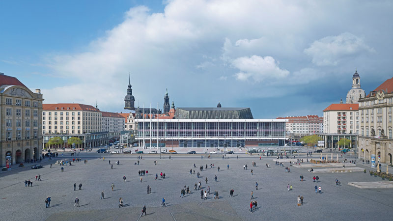 Wegen seiner viel gelobten Akustik wird das Herzstück des Gebäudes – der neue, weinbergförmige Konzertsaal und Hauptspielstätte der Dresdner Philharmonie – immer wieder mit der Hamburger Elbphilharmonie verglichen. Ihn umgeben gigantische Foyers und Treppenhäuser mit Blick zum Dresdner Altmarkt, die alle weiteren Einrichtungen und Räume miteinander verbinden. Als architektonisches Highlight gilt die weitläufige Eingangshalle im Erdgeschoss, die die Gäste empfängt und über mehrere Treppen in die Obergeschosse führt.