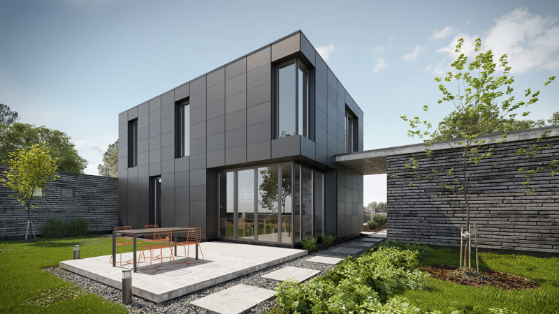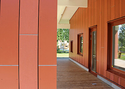 Optisch wirke eine Fassade, die mit einem Agraffensystem und »Cembrit Patina Original« bekleidet wurde, zwar nahezu monolithisch massiv, ökonomisch und ökologisch, allerdings sei sie ein Leichtbau. Als solcher spare sie Rohstoffe, Energie und Gewicht. Sind im Zuge einer Modernisierung z. B. Tafeln in einer anderen Farbe gefragt, kann die Unterkonstruktion weitestgehend weiter genutzt werden. Hinterschnittanker, Schrauben und Befestiger altern nicht und sind – ebenso wie »Cembrit Patina Original« – als nicht brennbar klassifiziert. Deshalb ist die beschriebene VHF für jeden Gebäudetyp zugelassen.
