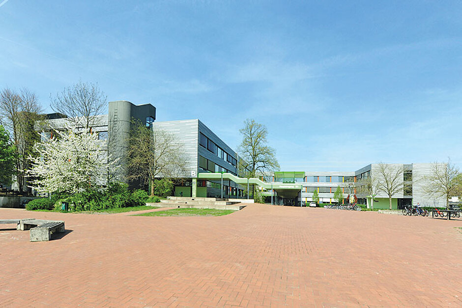Die Arbeiten beschränkten sich nicht nur auf die Hülle des Gebäudekomplexes. Auch der zuvor fast vollständig begrünte und mit einer zentralen Teichfläche versehene Innenhof der Schule passt sich nach seiner Umgestaltung der aufgeräumten Struktur der Fassade an. Dazu tragen laut Hersteller besonders die großen und pflegeleichten Hochbeete der Firma Richard Brink bei.