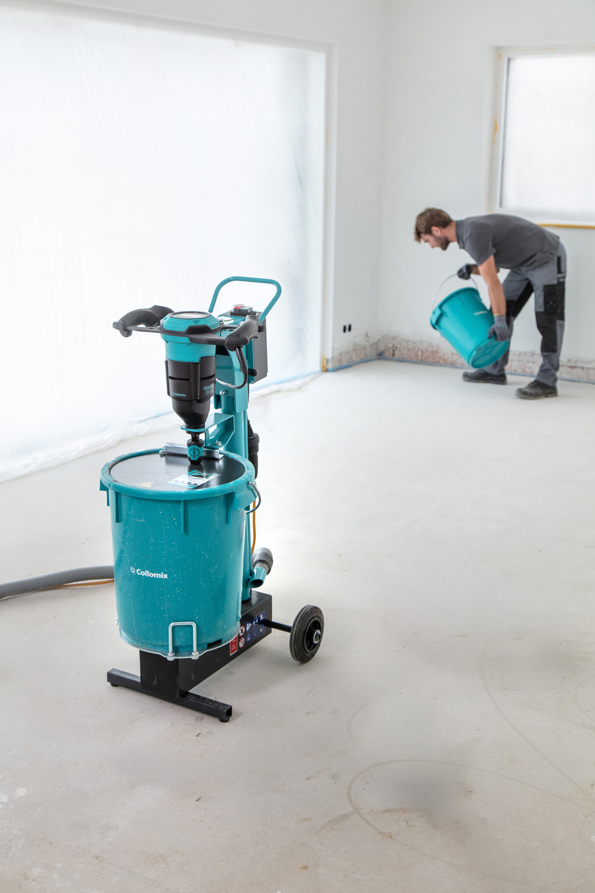 Enge Badezimmer, kleine Flure oder ein Einsatz im obersten Stockwerk – der »oneMix 340« ist für jede Baustelle geeignet. Dank seiner kompakten und leichten Bauart lässt er sich mühelos über Treppen tragen und in jedem Raum einsetzen, egal wie wenig Platz vorhanden ist. Er ist mobil, flexibel und effizient und sorgt überall für perfekte Ergebnisse. Die Maschine kann auch an eine Staubabsaugung angeschlossen werden, wodurch sich die Staubentwicklung beim Befüllen des Eimers erheblich reduziert.