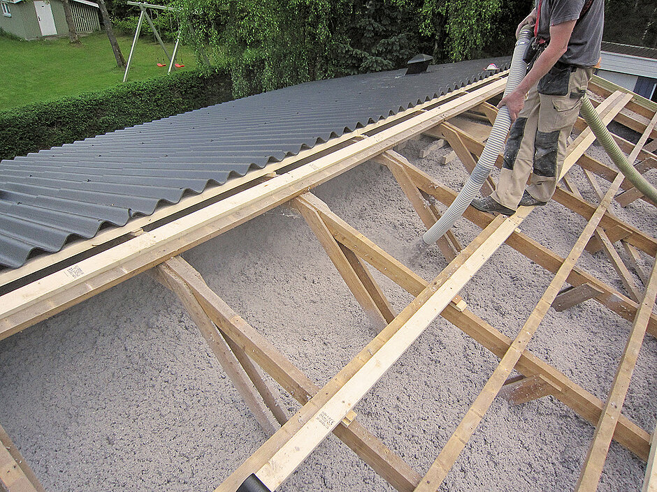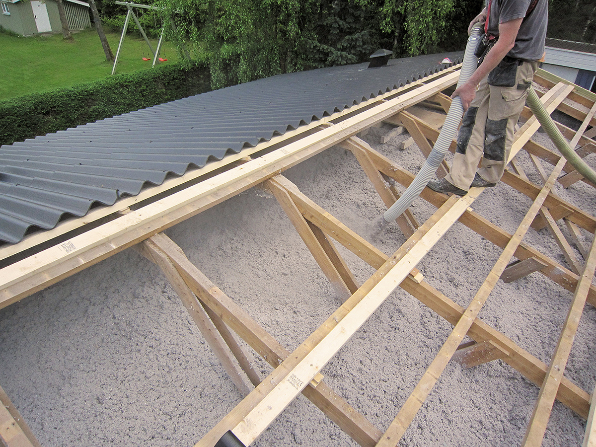 Einblasdämmungen eignen sich vor allem, um verschalte Hohlräume zu füllen. Das können beplankte Wände, nicht begehbare Dachböden, Kriechkeller, der Zwischensparrenbereich von Schrägdächern, Pult- oder Flachdächer sein. Eine Cellulose-Schicht von 28 cm genügt, um den Wärmedurchgangskoeffizienten auf 0,14 W/(m²K) zu senken. Im Gegensatz zu festen Dämmplatten schmiegt sich das dichte Cellulose-Gewebe selbst dann noch dicht an, wenn sich Bauteile aus Holz im Laufe der Zeit verziehen.