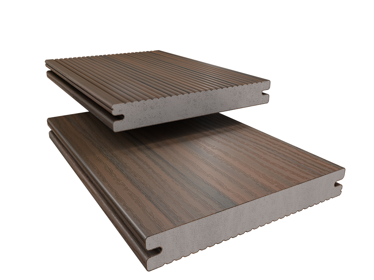 Mit der neuen Farbe »Herbstbraun« erweitert Deceuninck das System »Majestic Massive Pro« um einen warmen, natürlichen Farbton. Die harmonische Farbstimmung verleiht jedem Außenbereich ein modernes und zugleich ruhiges Erscheinungsbild. Die einzigartige Maserung wirkt wie echtes Holz, ohne die sonst aufwendige Pflegearbeit. Die coextrudierten Premiumdielen mit ihrer patentierten 360°-PVC-Ummantelung sind die technologisch fortschrittlichsten Terrassenprofile im »Twinson«-Sortiment. Sie überzeugen durch hohe Formstabilität, schnelle und effiziente Montage sowie vollständige Recyclebarkeit. Zudem sind sie vollständig kompatibel mit der schraublosen »Twinson Click«-Unterkonstruktion.