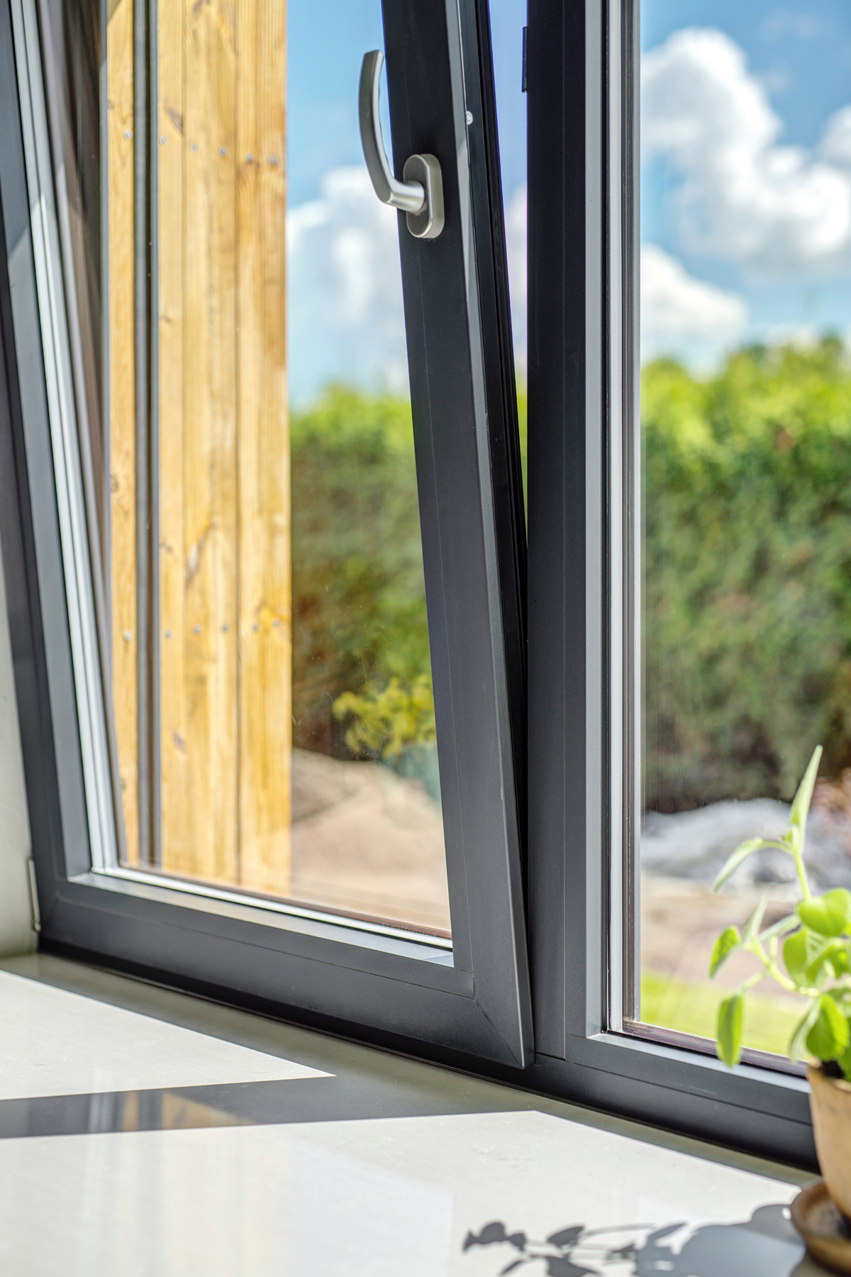 Besonders wichtig war den Bauherren vor allem der hervorragende Wärmedämmwert Uf von 0,93 W/m2K. Durch die Möglichkeit, dicke Gläser einsetzen zu können, haben die Fenster zudem einen optimalen Schallschutz – Kälte und störende Geräusche werden damit ganz einfach ausgesperrt. Die spezielle Klebetechnologie erlaubt hier besonders große und stabile Fenster und somit lichtdurchflutete, helle Räume.