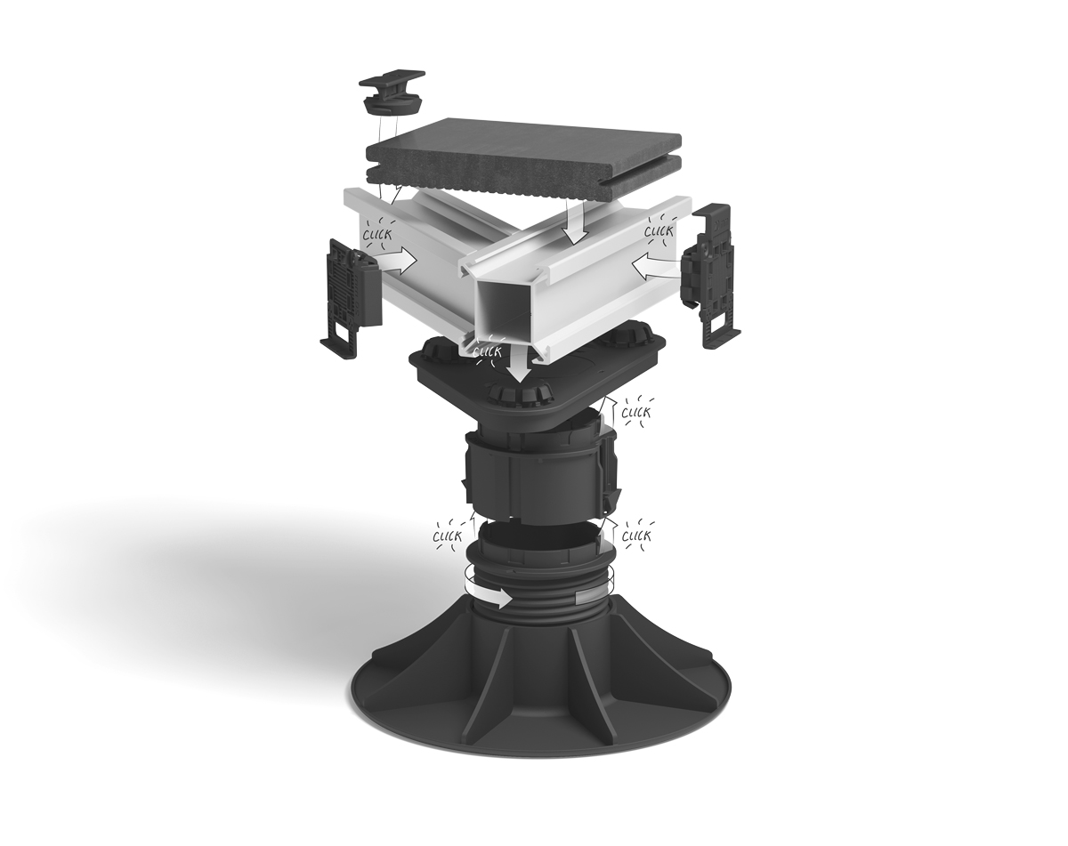 »Twinson Click« eine einfache und schnelle Möglichkeit zur schraubenlosen Montage der Twinson Terrassensysteme »Majestic Massive Pro« und »Character Massive«. Die modulare Unterkonstruktion erlaubt laut Deceuninck eine bis zu 2,5 mal schnellere Montage im Vergleich zu einer Holzterrasse mit Schrauben und steht somit für ein effizientes System, das dabei langlebig und darüber hinaus vollständig wiederverwertbar ist. Unebenheiten oder Höhenunterschiede gleicht das System problemlos aus. Verschiedene Aufbauhöhen und Zubehör wie Start- / Endclip, Eckverbinder und Höhen-Nivellierer runden das Komplettangebot des durchdachten Click Systems ab.