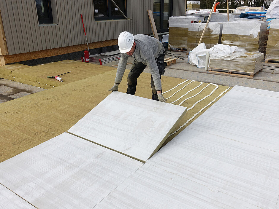 Deshalb, aber auch angesichts einer intensivierten Nutzung von Flachdächern, entscheiden sich Planer und Investoren gerne für die nicht brennbare »Solarrock«. Sie schafft die Basis für z. B. eine sichere Ausführung von Gründächern mit Solaranlagen. Erhöhte Lasten werden sicher in die Tragschale eingeleitet. Die »Solarrock« ist für den Einsatz auf Beton-, Massivholz- und Stahlleichtdächern geeignet.