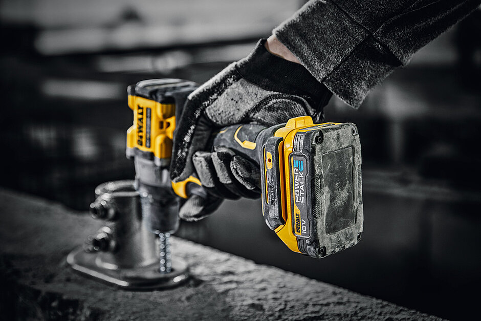 Die Akku-Bohrschrauber (»DCD 800 E2T«) und der Akku-Schlagbohrschrauber (»DCD 805 E2T«) sind serienmäßig mit 18 Volt Powerstack-Akkus ausgestattet. Darin sind Pouch-Zellen wie in einem Sandwich gestapelt. Das ermöglicht nicht nur eine kompaktere Bauform. Die Pouch-Zellen leiten laut Dewalt zum einen Wärme besser ab und erhöhen so die Lebensdauer sowie die Anzahl der Ladezyklen. Zum anderen kann der Strom durch geringere Innenwiderstände besser fließen. Die Powerstack-Akkus sind kompatibel mit allen 18 Volt XR-Maschinen und -Ladegeräten. Für Anwender, die bereits Maschinen mit 18 Volt XR oder XR Flexvolt-Akkus von Dewalt nutzen, gibt es beide Schrauber auch als Basisversion (»DCD 800 NT« und »DCD 805 NT«) ohne Akku und Ladegerät.