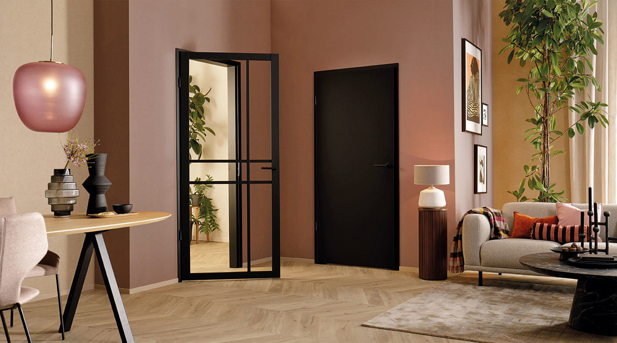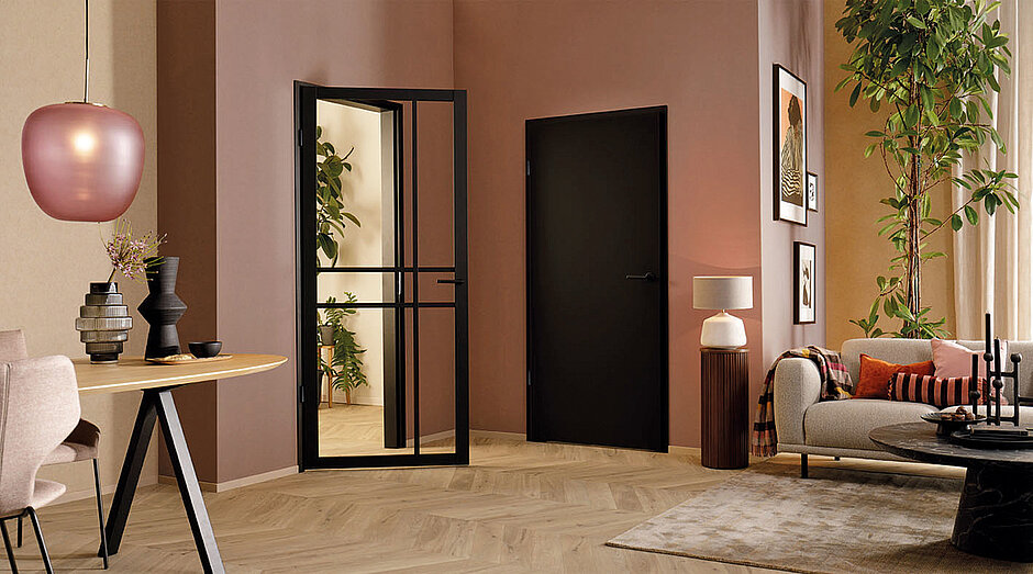 Dextüra setzt in Zukunft neben Weiß nicht einfach nur auf Schwarz, sondern auf Tiefschwarz. Das Besondere: Der matte Schein der Lackoberfläche soll eine edle Note offerieren, die in der Inneneinrichtung mittlerweile eine verstärkte Nachfrage erfährt. Schwarze matte Oberflächen bei filigranen Möbeln, wie beispielsweise Regalen im industriellen Design oder auch bei raumbestimmenden Möbelstücken, haben mit den neuen Dextüra Innentüren in Tiefschwarz nun eindrucksvolle visuelle Mitspieler, die neue Raumkonzepte möglich machen.