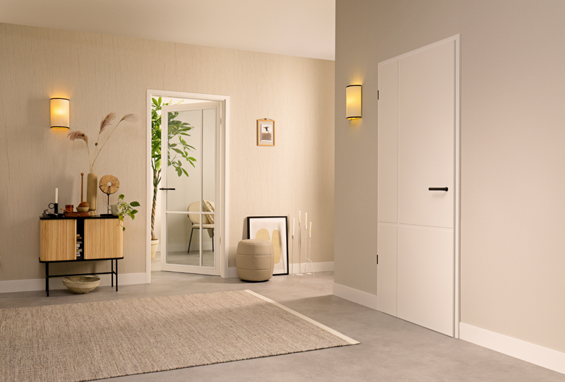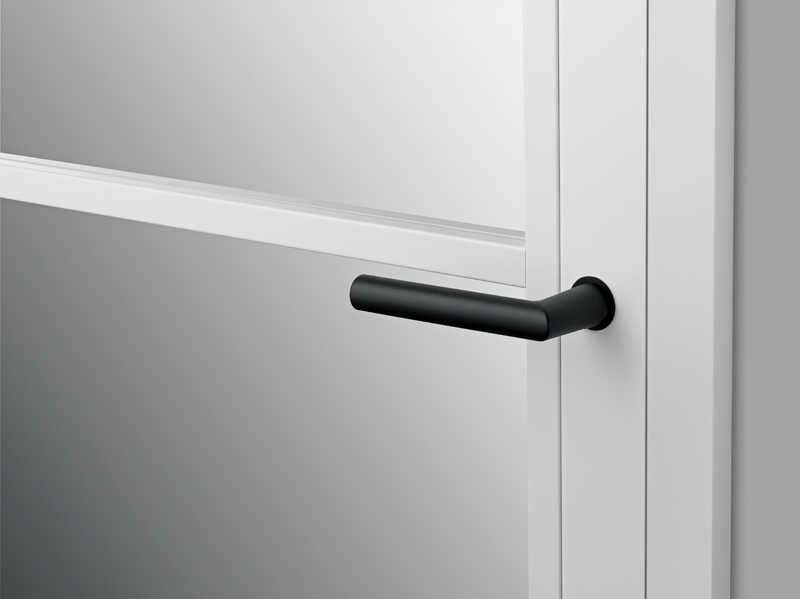 Die »Form«-Glastüren bieten aufgrund der neuen Verschlankung der Rahmen und Leisten mehr Glasfläche und damit mehr Lichteinfall. Ein Faktor, der in der Konzeption der Türserie maßgebend gewesen sei: Mehr Licht in Räume bringen, um das Spiel von Farben und Formen zu stärken. Bei den Glastüren lassen sich weitere elegante Akzente erzielen – beispielsweise durch den Einsatz minimierter Rosetten bei den Garnituren.