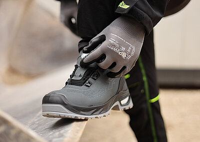 Mit einem Obermaterial aus Kunststoff und einer Außensohle aus Gummi gehören die Sicherheitsschuhe FORCE low S1P und FORCE mid S1P zu der robusten und strapazierfähigen Kategorie. Die beiden Modelle unterscheiden sich in ihrer Höhe: Es kann individuell zwischen Schuhen mit niedrigem oder halbhohem Schaft gewählt werden. Die Innensohle der Schuhe besteht aus Memory-Baumwolle und macht die Schuhe besonders atmungsaktiv, auch bei anstrengenden Arbeitstätigkeiten. Mit einem Sicherheitsstandard nach EN ISO 20345:2011 S1P SRA zeichnen sie sich neben der Zehenschutzkappe im vorderen Bereich des Schuhs durch eine rutschhemmende, antistatische und ölresistente Sohle aus. Zur besseren Sichtbarkeit in dunklen Arbeitsbereichen sind die Sicherheitsschuhe mit Reflektoren an der Ferse ausgestattet. Trotz stabiler Schutzkappe und durchschnittssicherer Sohle erweisen sich die Sicherheitsschuhe FORCE low S1P und FORCE mid S1P als äußerst leicht im Eigengewicht und bieten dadurch ein angenehmes Tragegefühl – auch an langen Arbeitstagen.
