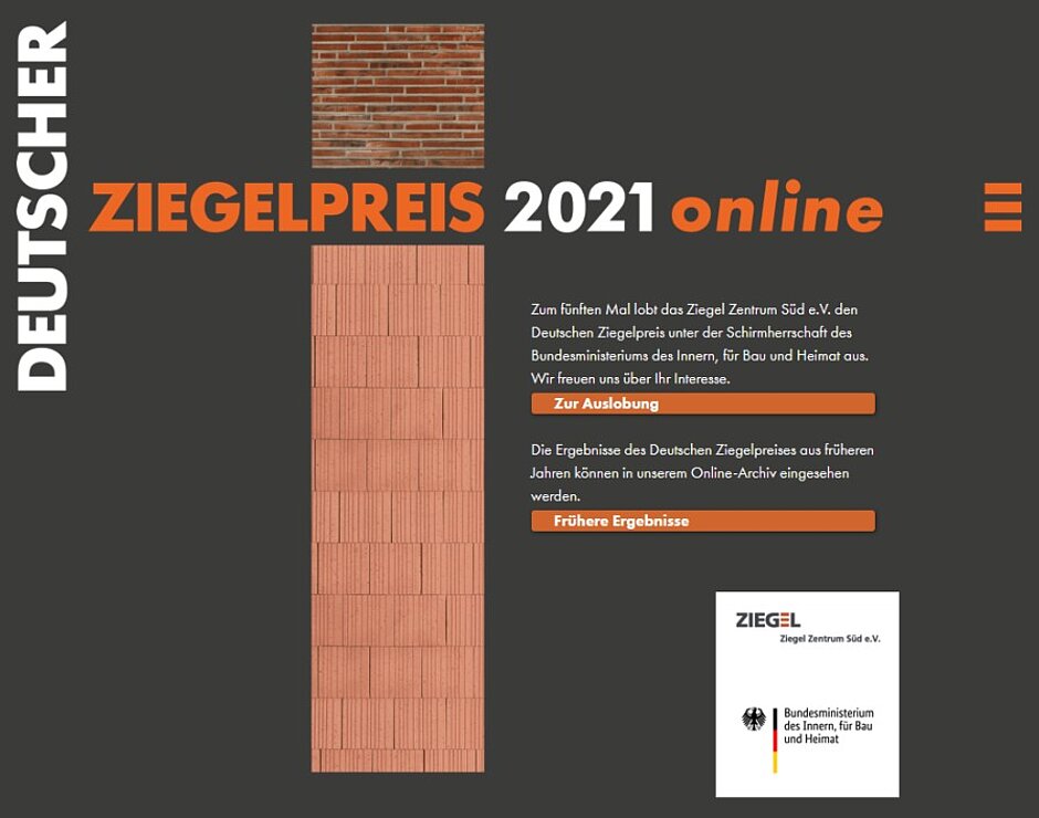Die offizielle Bekanntgabe der Gewinner findet am 12. Februar 2021 ab 17.00 Uhr im Rahmen eines Livestreams auf www.ziegel.de statt. Die Moderation der digitalen Preisverleihung übernimmt Nicola Borgmann, Direktorin der Architekturgalerie München, als Co-Moderator steht ihr Dr. Matthias Frederichs, Hauptgeschäftsführer des Bundesverbands der Deutschen Ziegelindustrie e.V. zur Seite. Der Bundesverband hat die Tätigkeiten des Ziegel Zentrum Süd ab dem 1. Januar 2021 übernommen und wird diese sowohl in der Hochschularbeit als auch bei der Auslobung des Deutschen Ziegelpreises fortsetzen. Dr. Frederichs zeigt sich begeistert von der Vielfalt der Einreichungen: „In der kreativen Umsetzung von monolithischen Außenwandkonstruktionen aus modernen, hochwärmedämmenden Ziegeln als auch in der beachtlichen baulichen Gestaltung mehrschaliger Ziegelaußenwandkonstruktionen zeigt sich der Ziegel einmal mehr als Bundesverband der Dt. Ziegelindustrie Deutscher Ziegelpreis 2021 Seite 3 von 6 der perfekte Baustoff – zukunftsfähig aufgrund seiner Vielfältigkeit, Langlebigkeit, Nachhaltigkeit und Recyclingfähigkeit.“